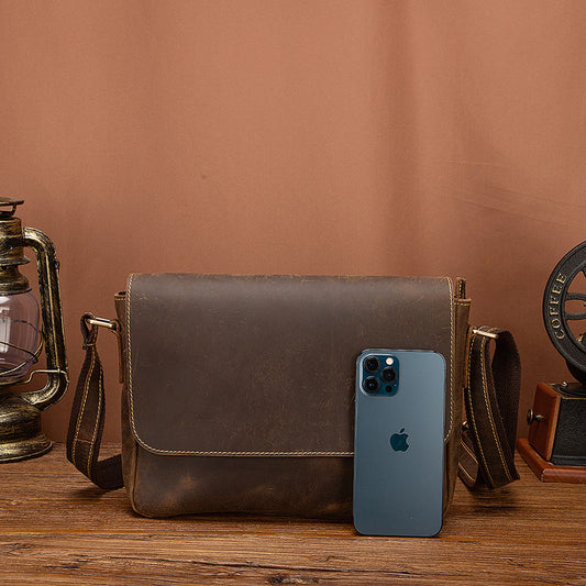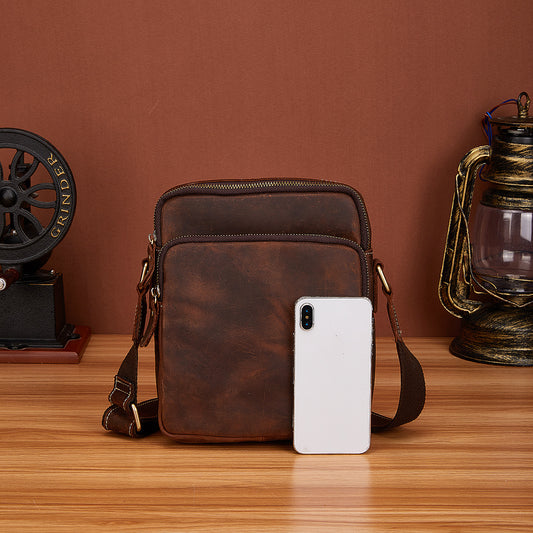 メンズショルダーバッグ牛革本革製レトロ旅行アウトドア男性斜めがけバッグ