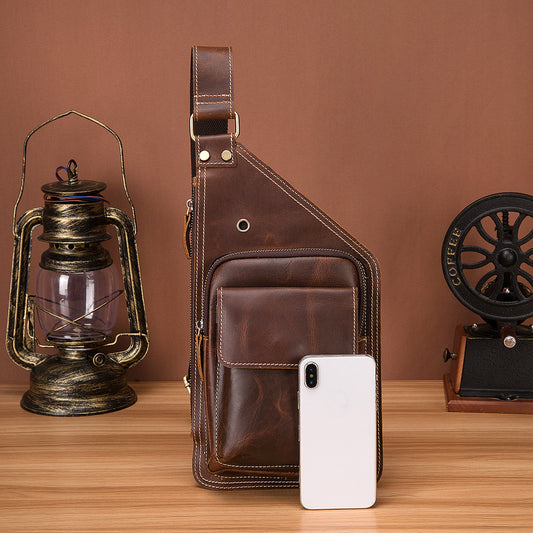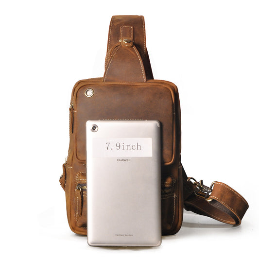 メンズバストバッグ牛革本革製レトロアウトドア多用途男性斜めがけバッグ