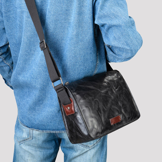 メンズショルダーバッグ牛皮本革製ファッションヴィンテージ 男性用斜めがけバッグ