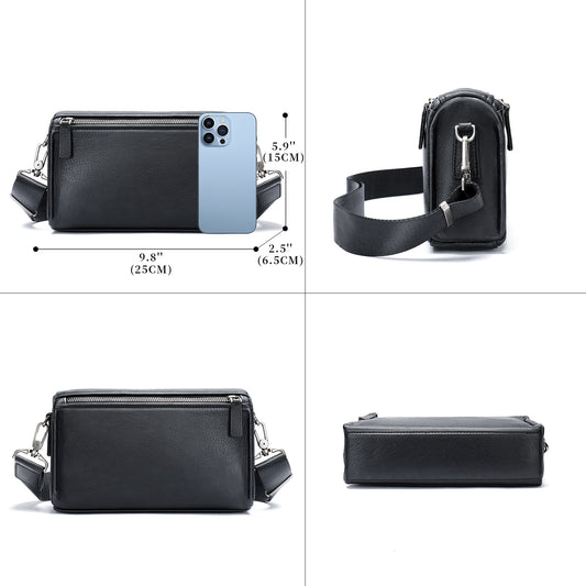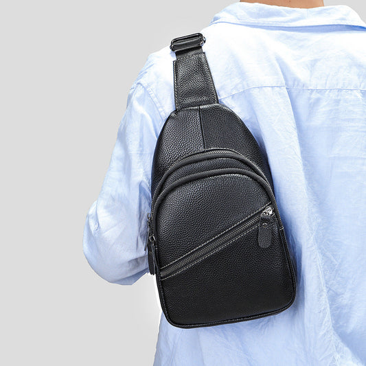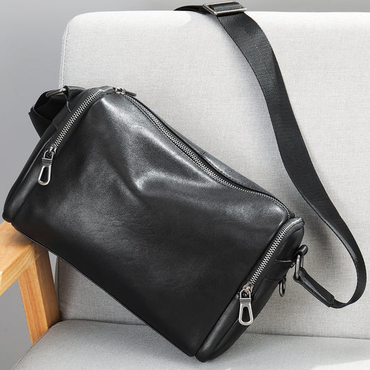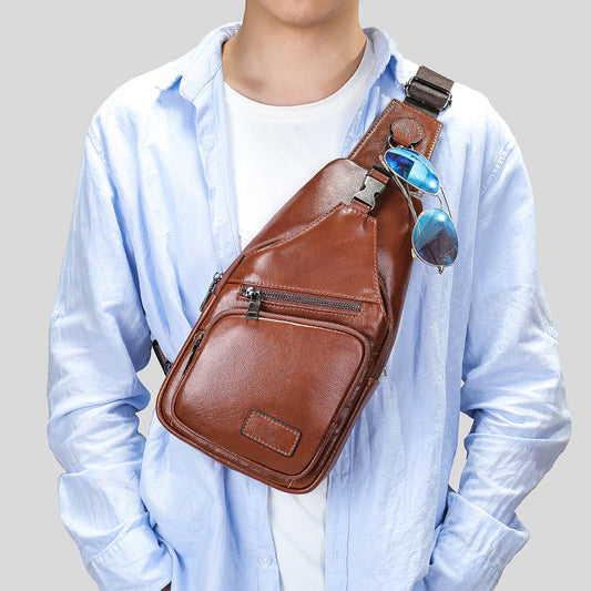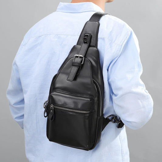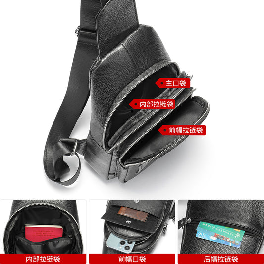 メンズバストバッグ牛皮本革製户外多機能ファッションカジュアルスポーツ男性バッグ