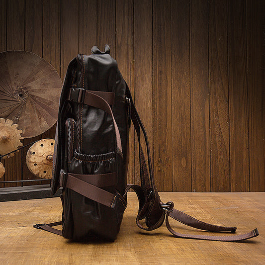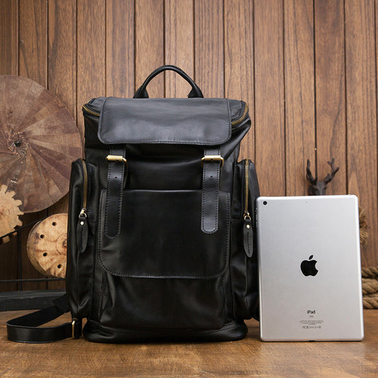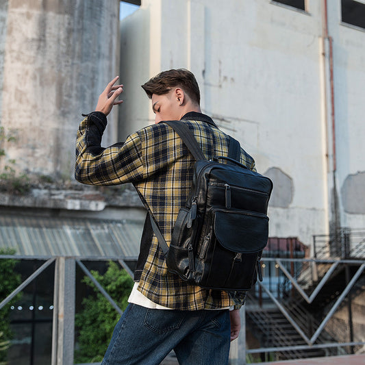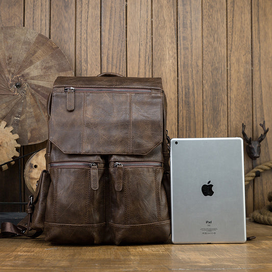 メンズリュック牛革レトロ韩国ファッション個性戸外旅行カジュアル男性パソコンバッグ