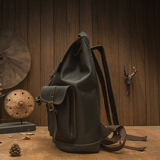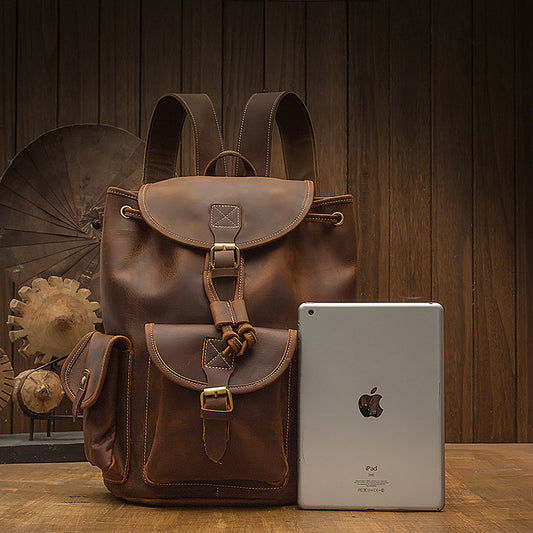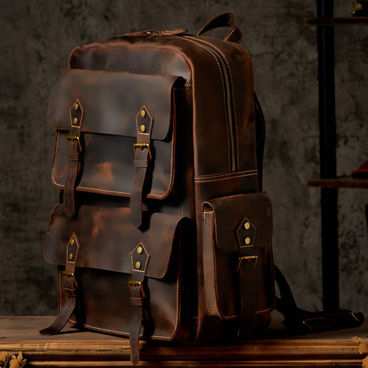 メンズリュック牛革本革製手作りクレイジー・ホースレトロファッション戸外旅行かばん