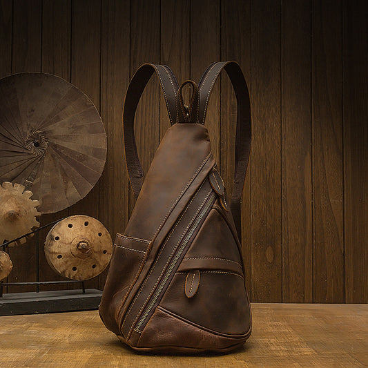 メンズバストバッグ牛革本革製手作りファッション大容量多機能レトロ斜めがけバッグカジュアル両肩バックパックリュックサック