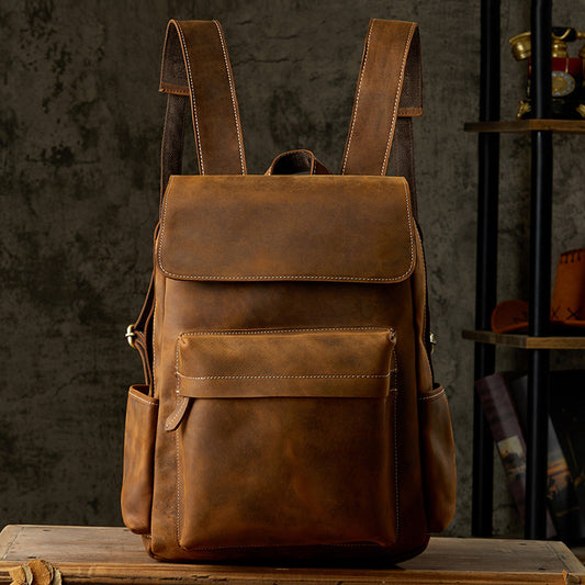 メンズリュック 牛革本革製 手作業 ファッションカジュアル旅行 レトロ クレイジー・ホース男性用バッグ
