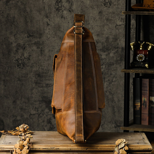 メンズ斜めがけバッグ 牛皮 クレイジー・ホース 手作り レトロ 個性ファッション多機能ショルダーバッグ