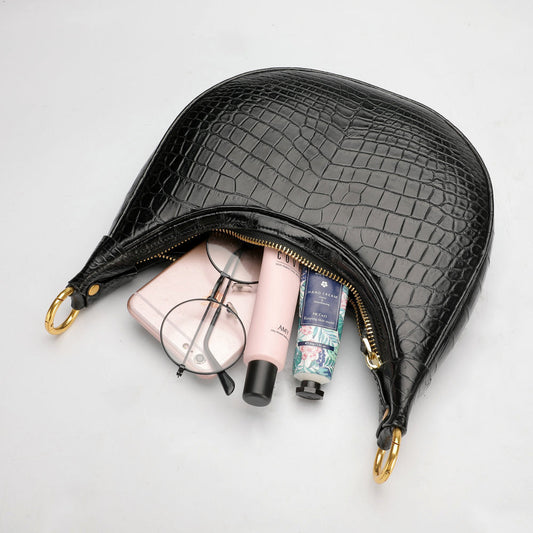 シャムワニ皮 女性バッグファッションショルダーバッグシンプル本革ショルダーバッグ