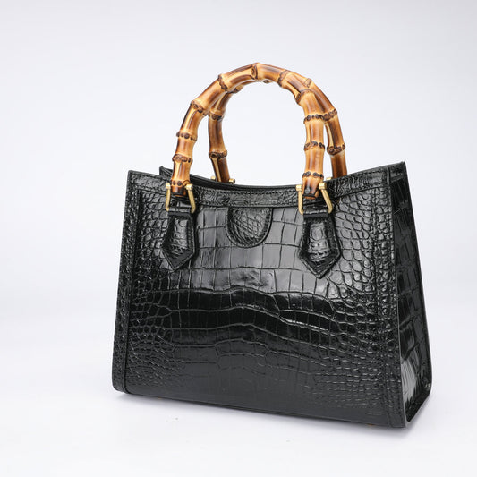 女性バッグ シャムワニ皮 本革バッグ 竹節バッグ ファッショントレンド 大容量 レディースバッグ