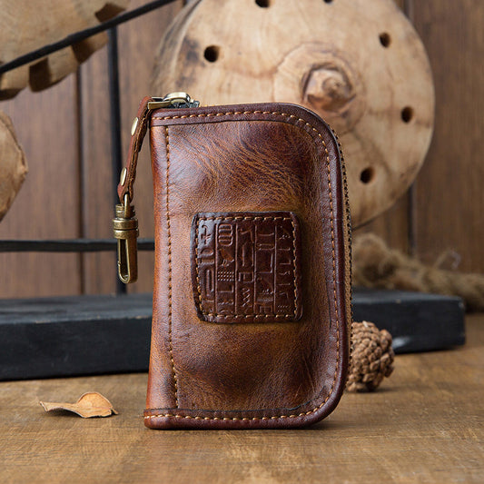 メンズ財布手作り牛革本革製ファスナー腰にかけるキーホルダー多機能ファッション男性用バッグ