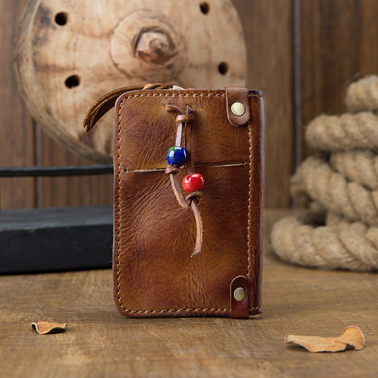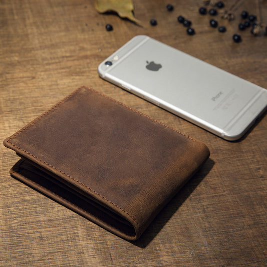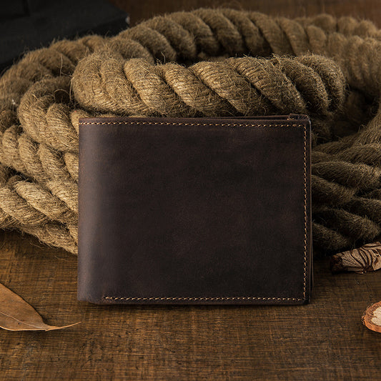 メンズ短財布 牛皮本革製 クレイジー・ホース オリジナル 手作業 レトロ 韩国ファッション男性用ウォレット