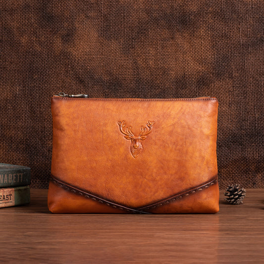 • メンズクラッチバッグ牛革レトロカジュアル男性用ハンドバッグ