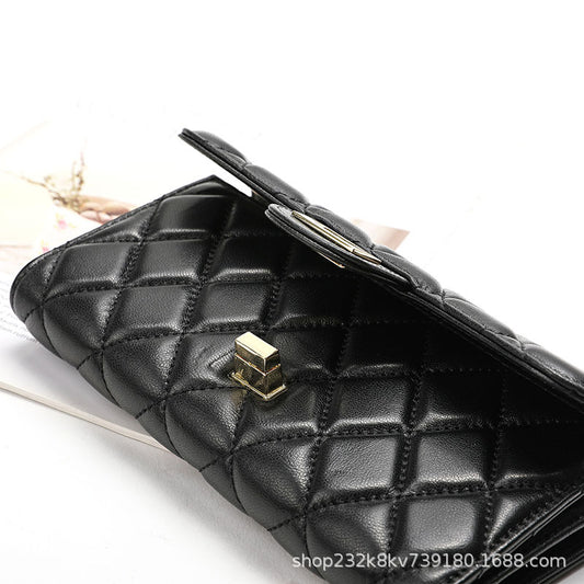 レディース財布チェックの小銭入れファッションのヒツジ革のウォレット二つ折り財布クラッチバッグ何とでも合う