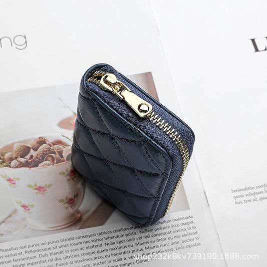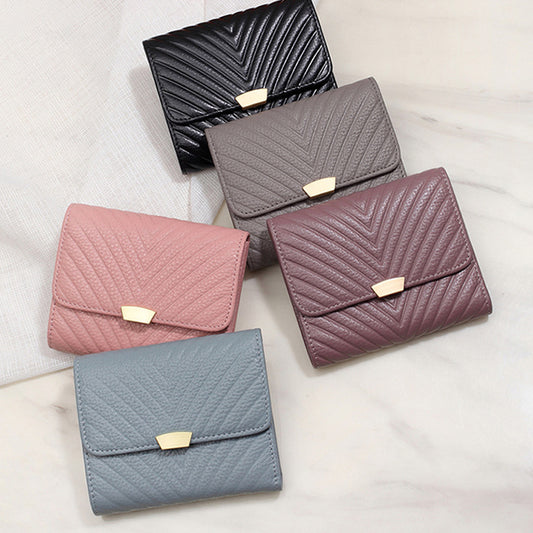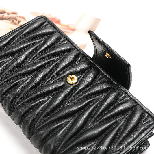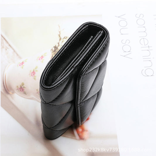レディース短い財布女性多機能折りたたみ女性の財布チェックシンプルヒツジ革小銭入れ レディース財布