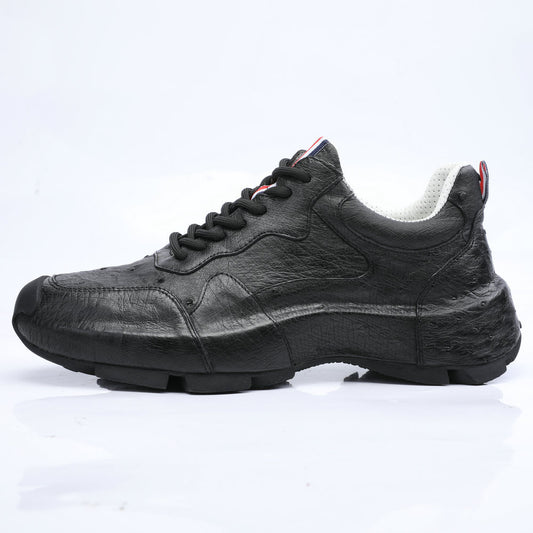 ダチョウ皮 本革製 メンズスニーカー ファッションカジュアルシューズ インヒール男性靴