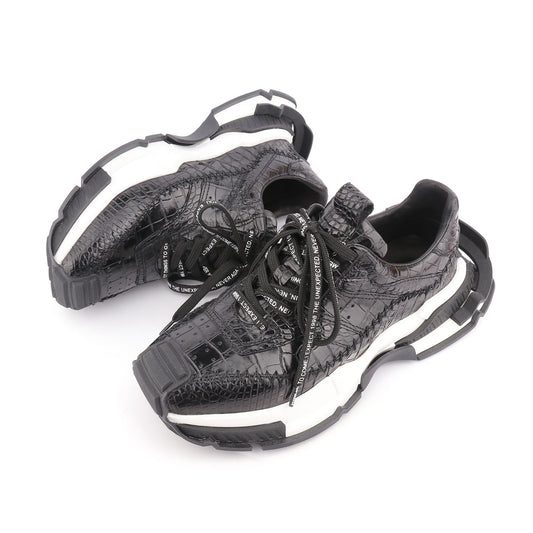 ワニ皮 本革製 メンズスニーカー スポーツカジュアル運動靴 シンプルファッション耐摩耗男性靴