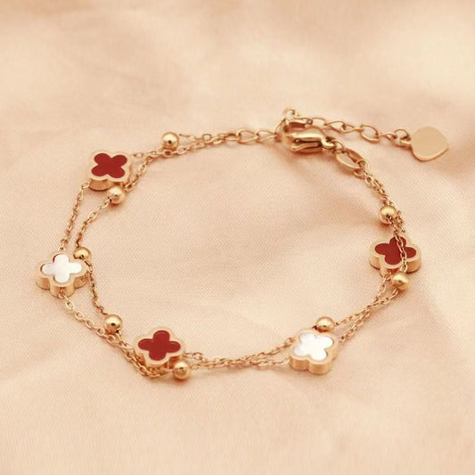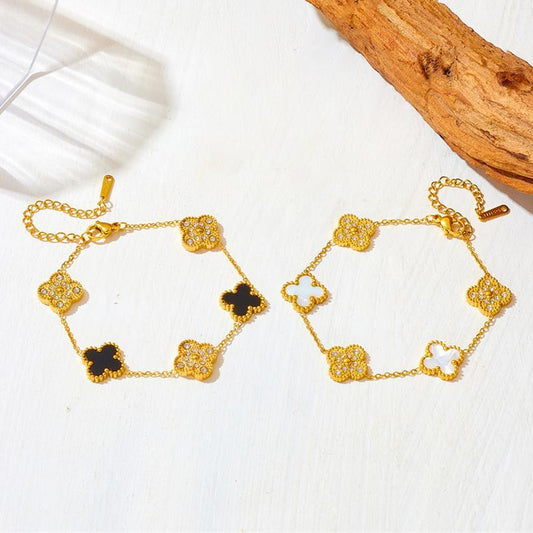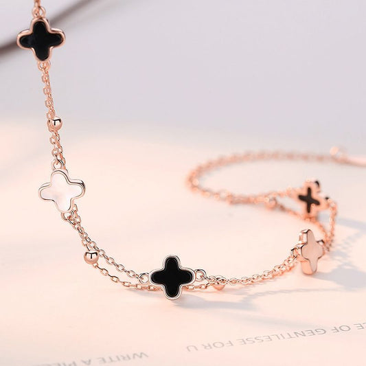 Asia Star 幸運の四つ葉クローバー黒白二重重ねブレスレットに調節可能ローズゴールド手飾り