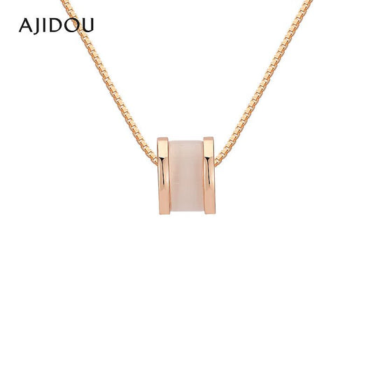 AJIDOUシンプルスタイリッシュラウンド型猫眼石ネックレス首のチェーンギフト