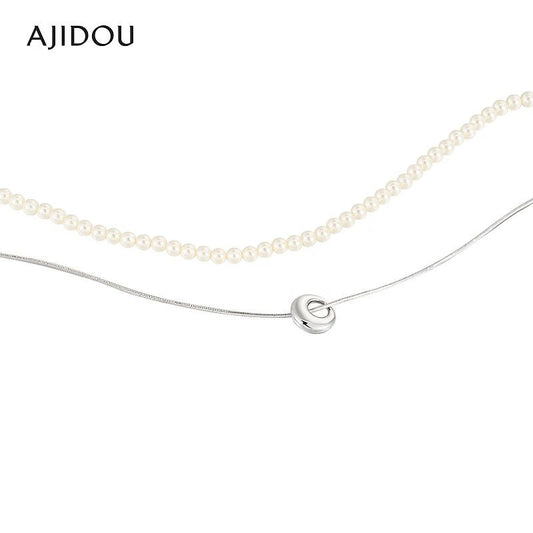 AJIDOUパールアルファベット2重ネックレス女性ins風鎖骨チェーン