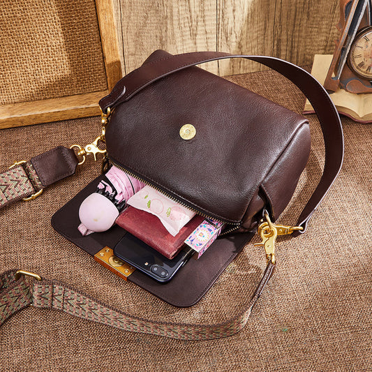本革レディースバッグレトロ牛革大容量メッセンジャーバッグシングルブロードバンド気質ショルダーバッグ.ポシェット