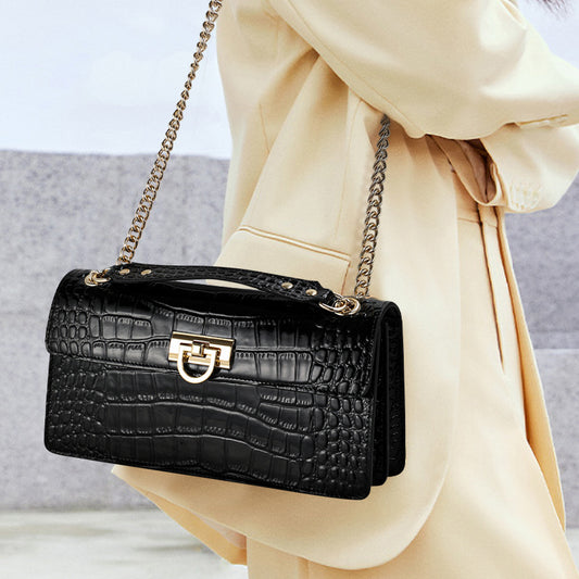 本革レディースバッグ鰐柄ファッションチェーンバッグ高品質斜め掛けバッグスクエアバッグ気質ショルダーバッグ.ポシェット