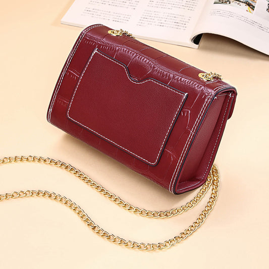本革女性バッグ斜め掛けバッグファッションネット人気チェックチェーンバッグショルダーバッグ.ポシェット