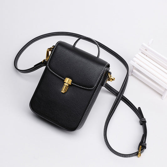 本革携帯バッグレディースミニ斜め掛けバッグトレンド縦タイプ牛革シンプルショルダーバッグ.ポシェット