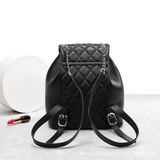 牛革レディースリュックサックチェックチェーンバッグ女性高級感カジュアルランドセル