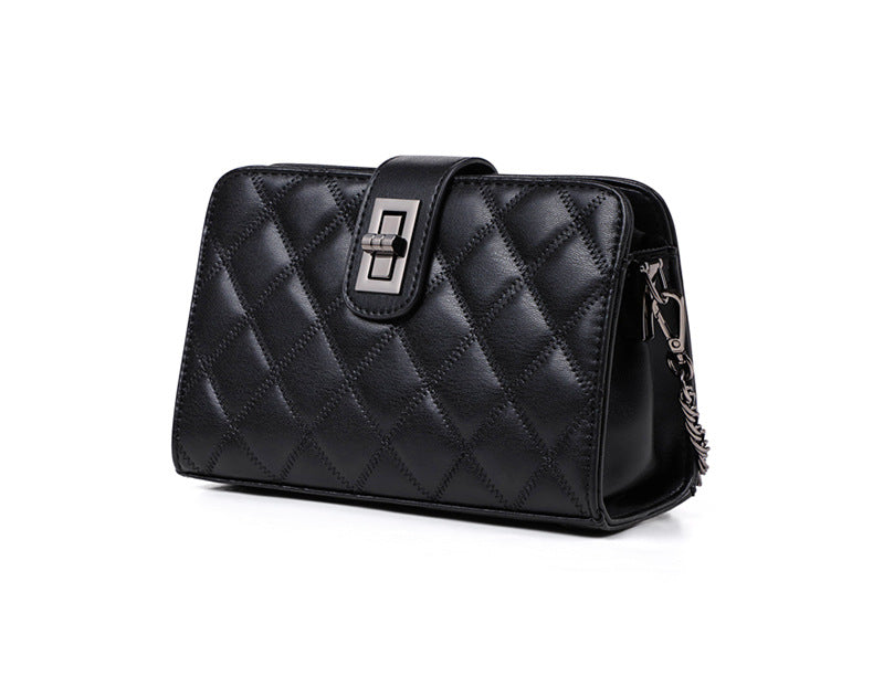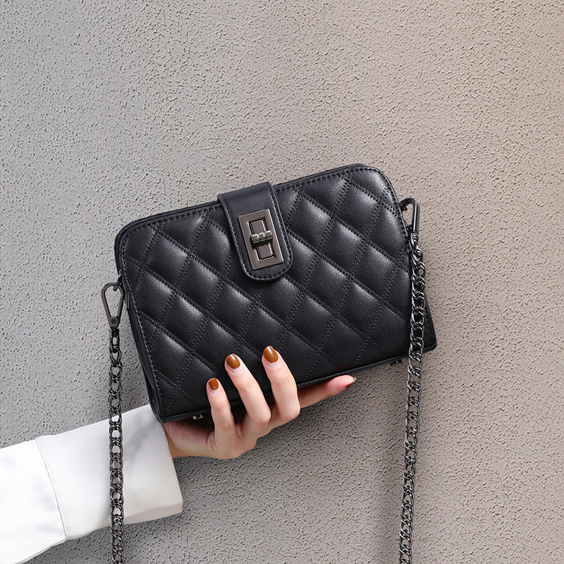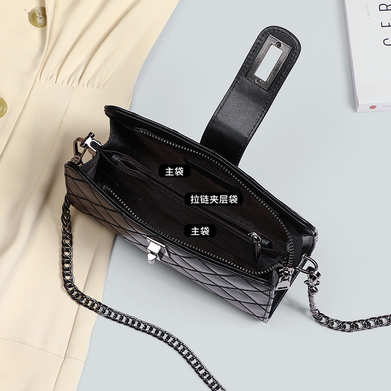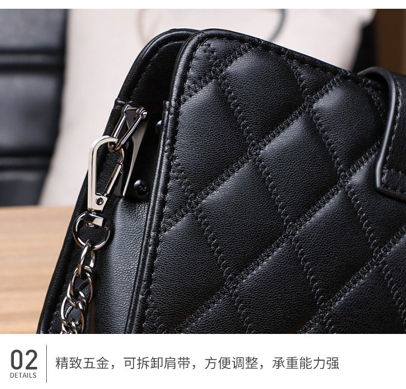 おしゃれな本革レディースバッグチェック柄チェーンバッグ牛革斜め掛けバッグ何とでも合うショルダーバッグ.ポシェット