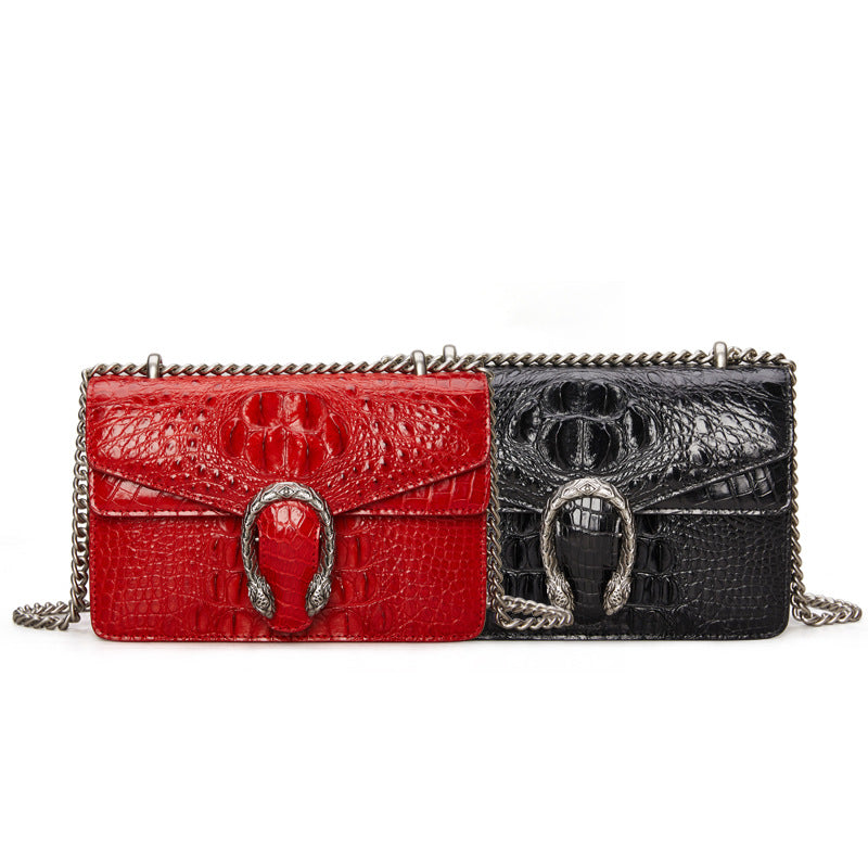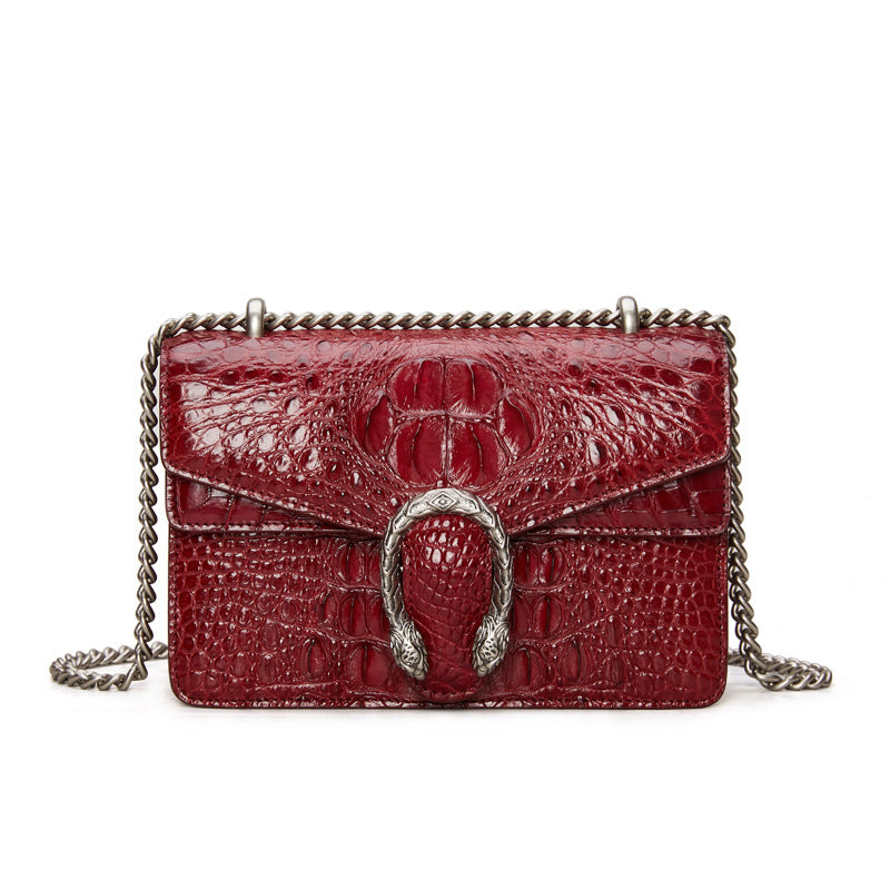 クロコダイル革のチェーンバッグおしゃれ本革レディースショルダーバッグカジュアルバッグ女性