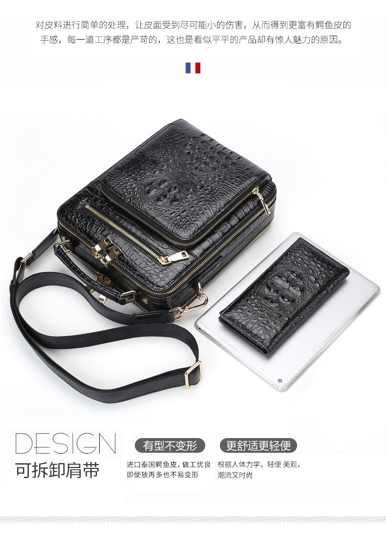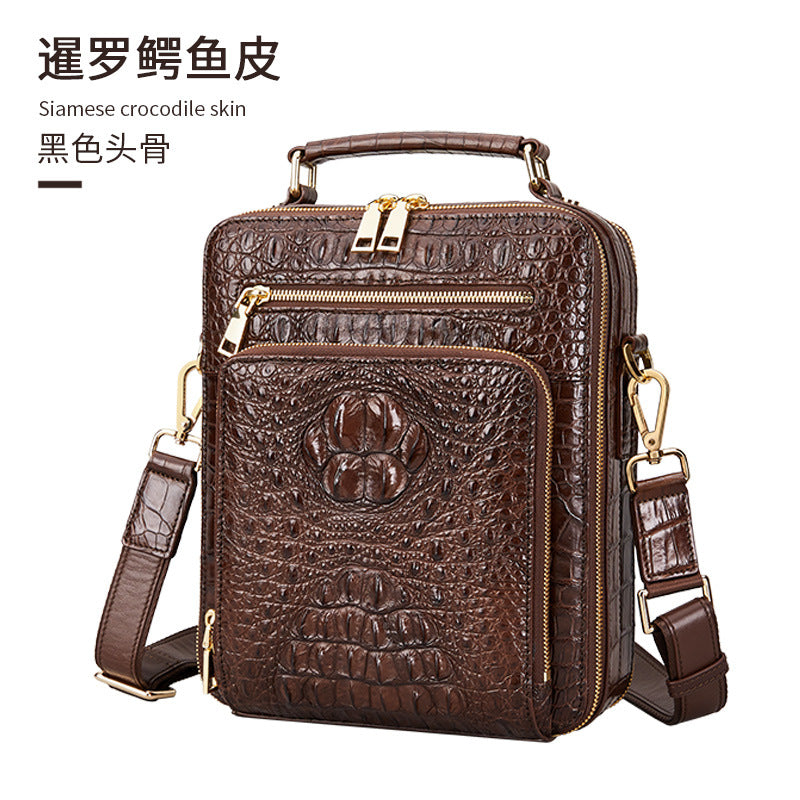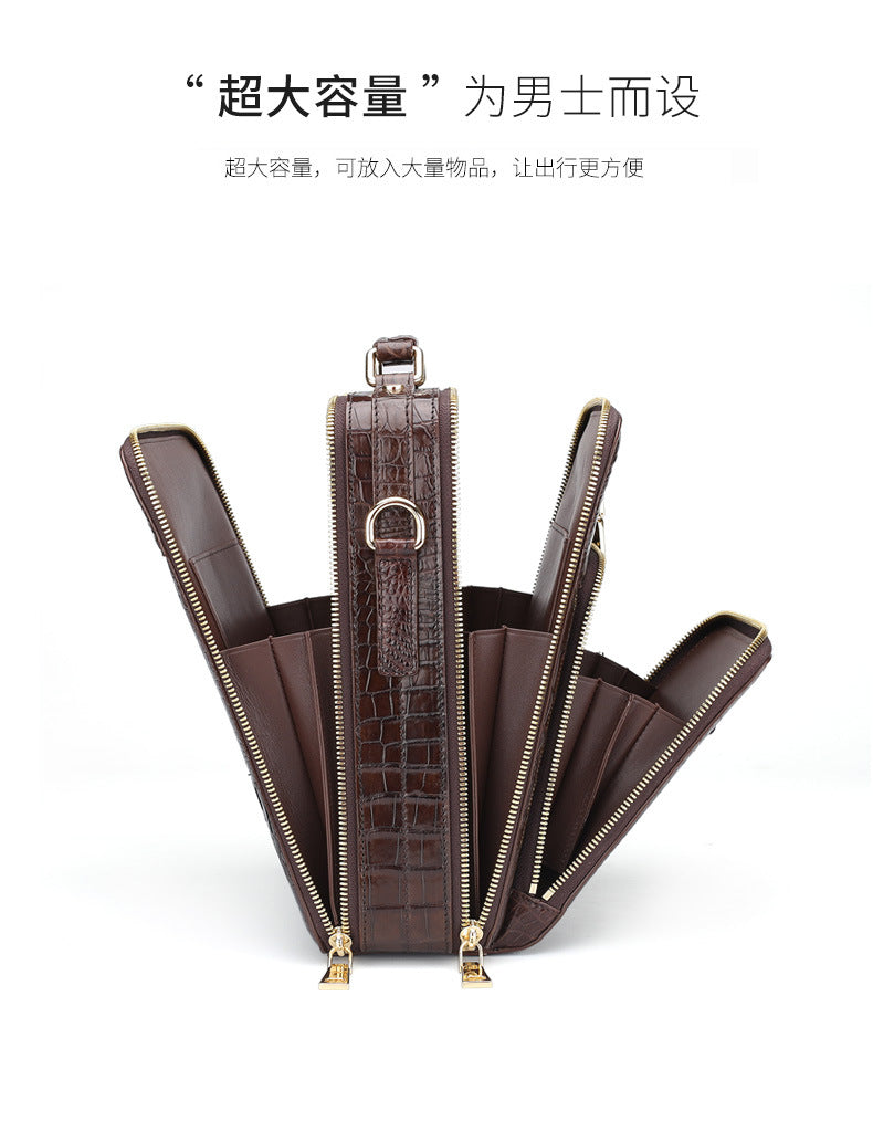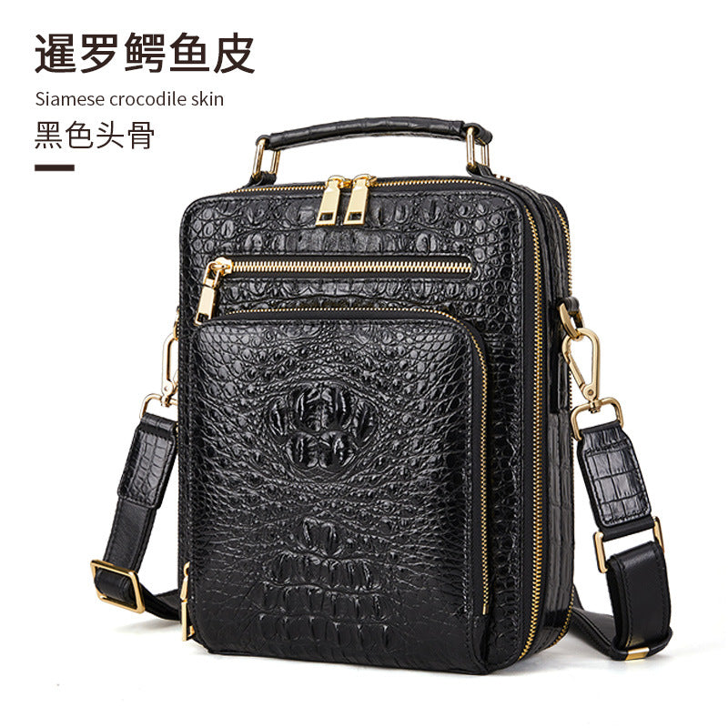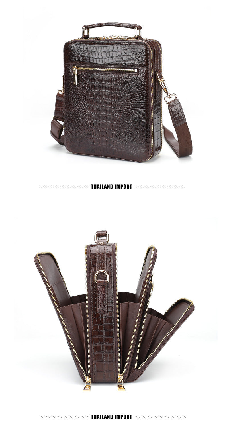 シャムワニ皮本革製メンズショルダーバッグビジネスカジュアル斜めがけバッグハンドバッグ