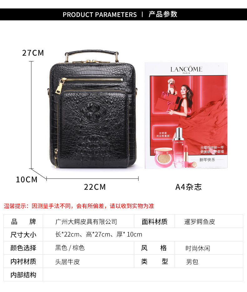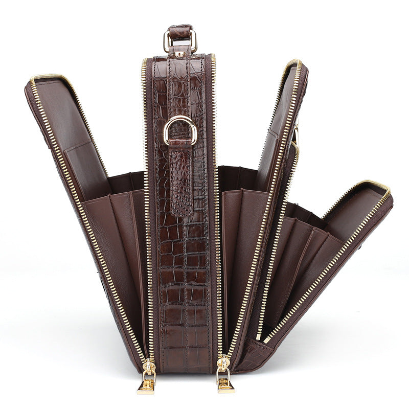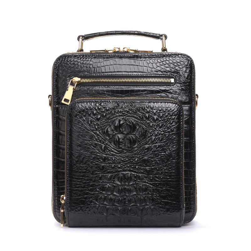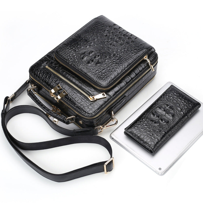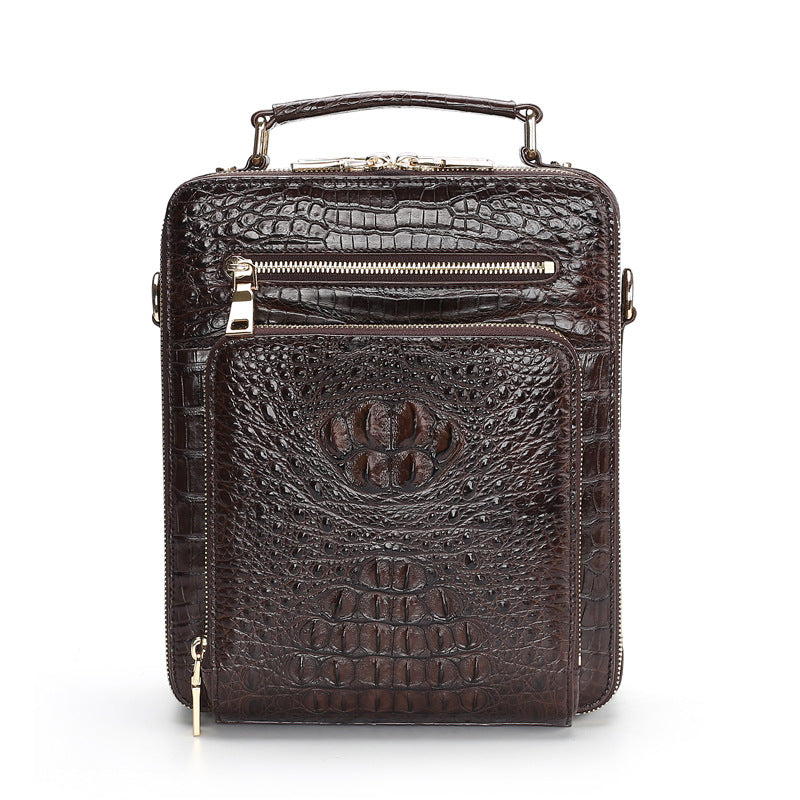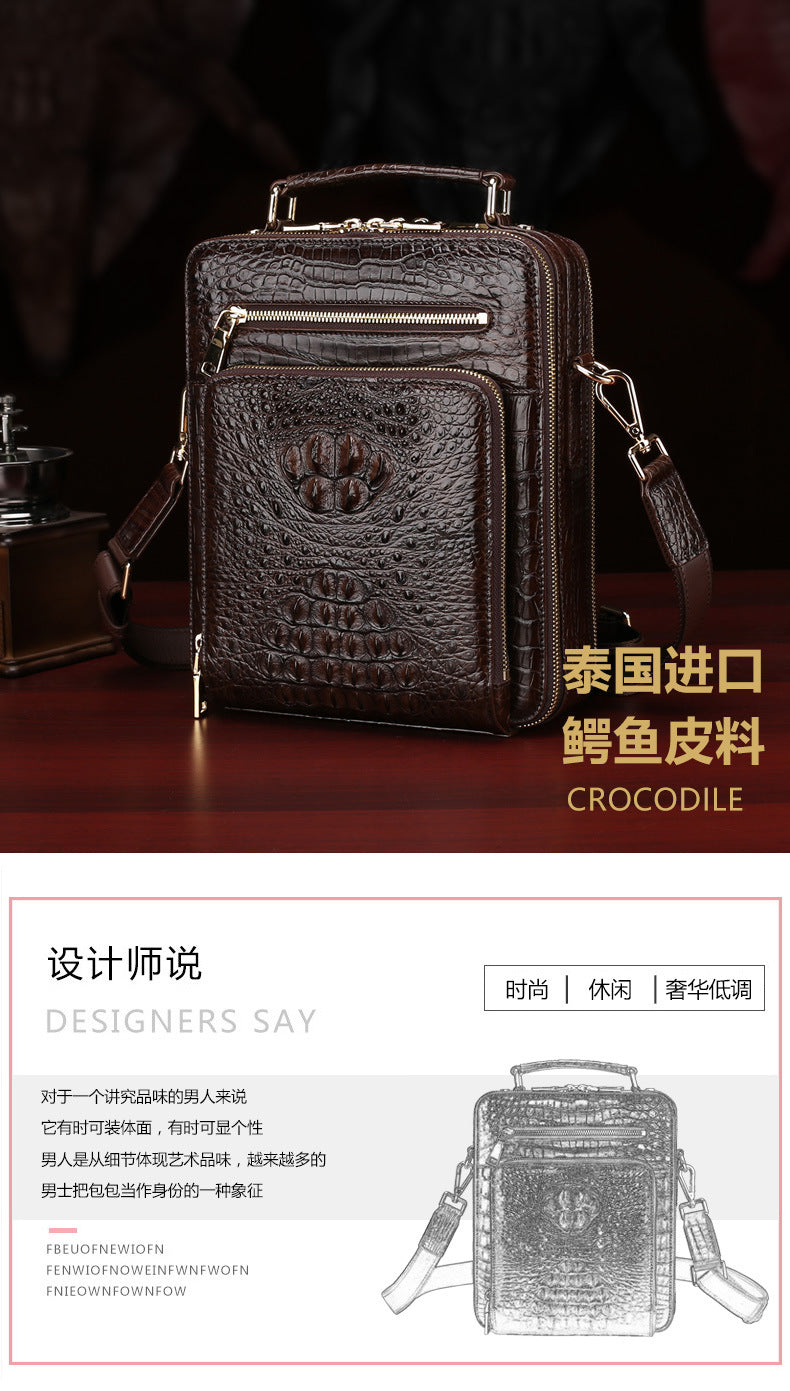 シャムワニ皮本革製メンズショルダーバッグビジネスカジュアル斜めがけバッグハンドバッグ