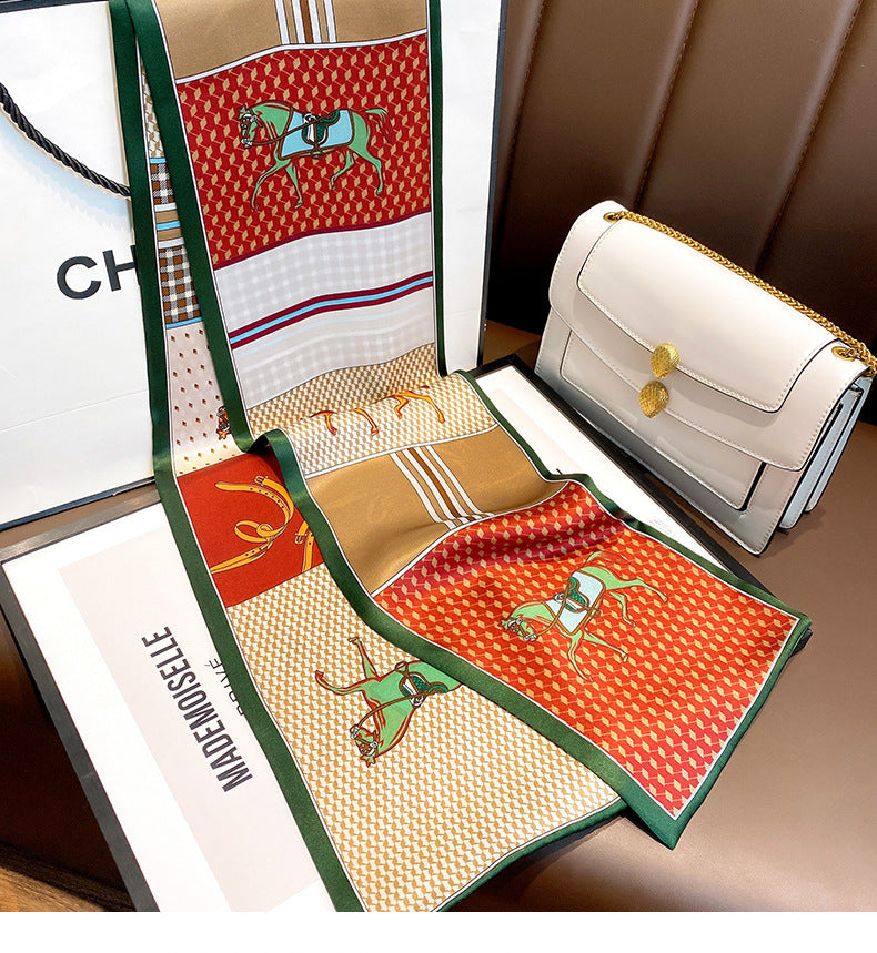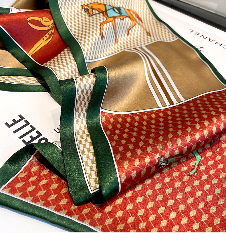 シルクのスカーフチェック柄スカーフ二重シルクサテンスカーフ桑蚕糸細長いリボン両面ネッカチーフおしゃれスカーフ