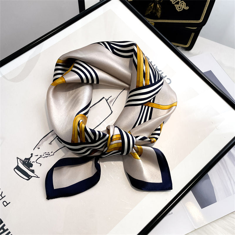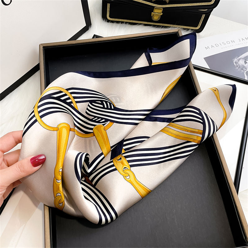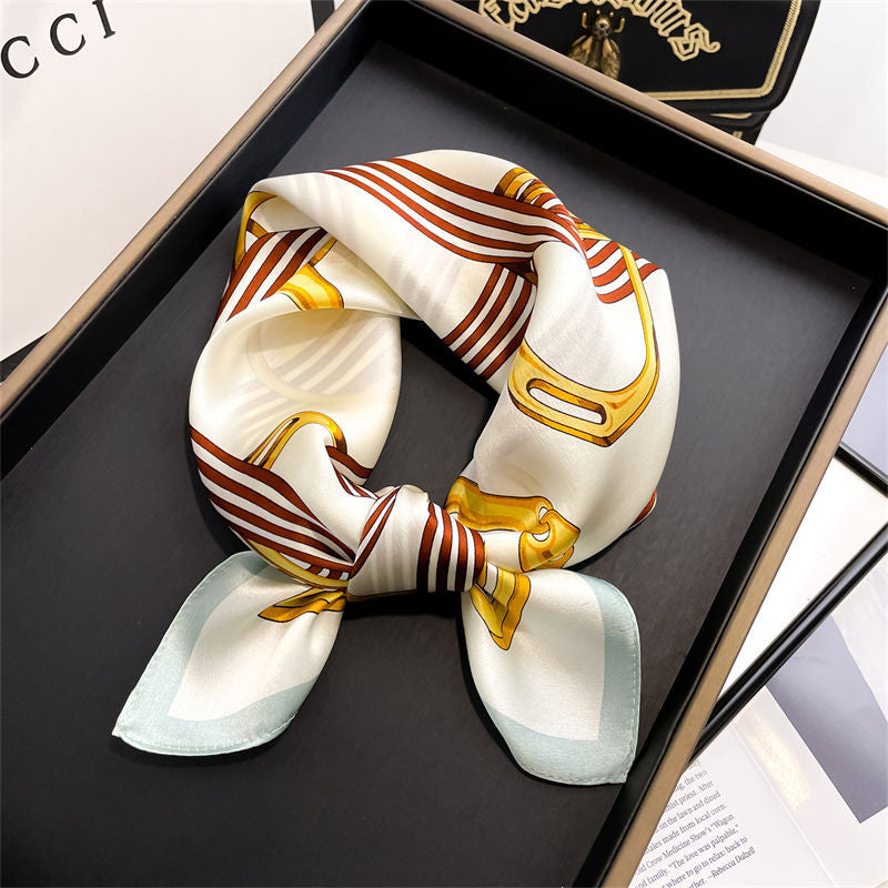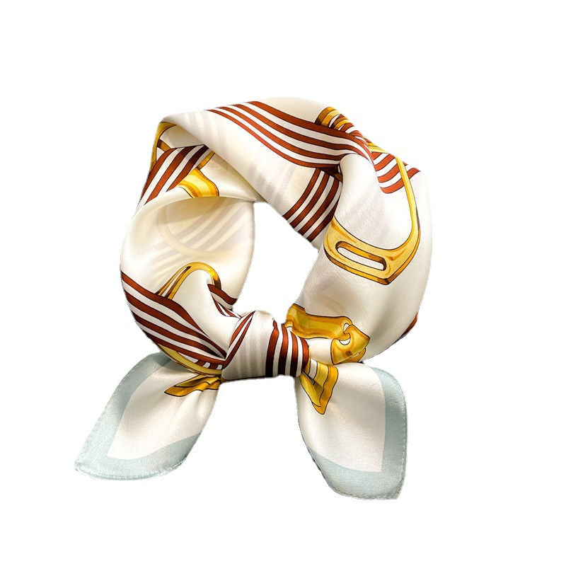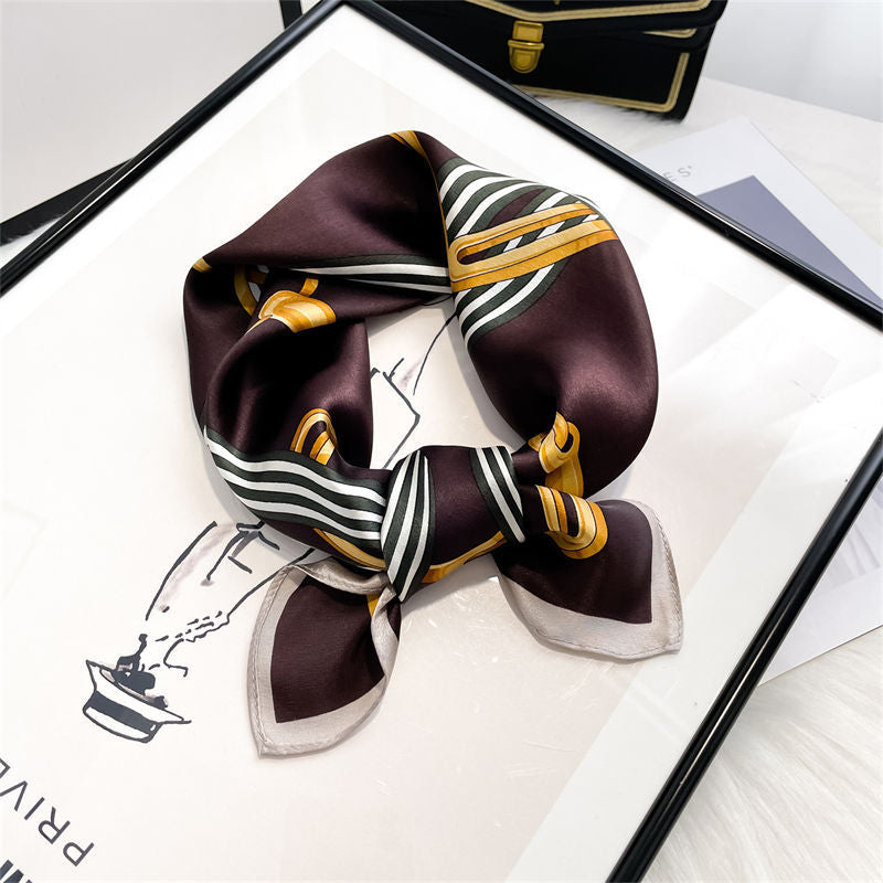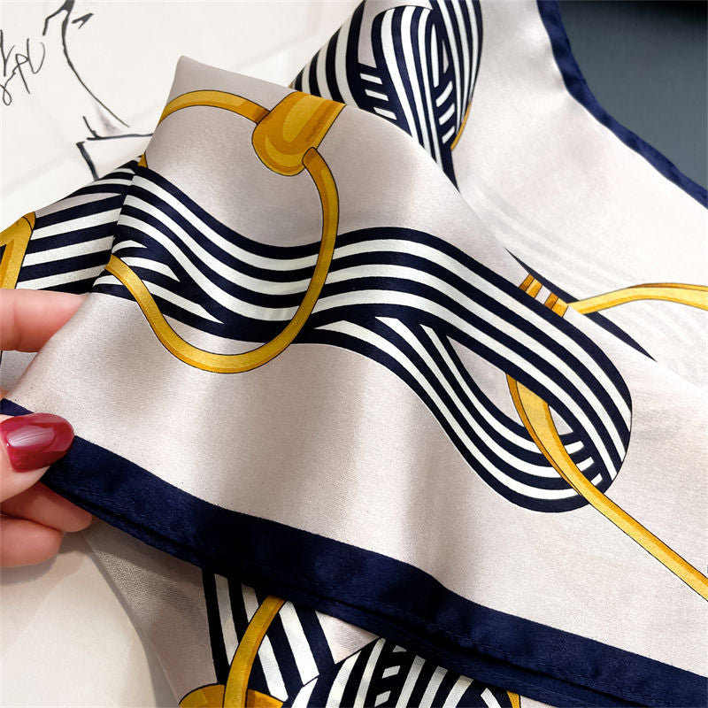 シルクのスカーフ薄手ファッションチェーンプリント柄シルクミニスカーフ女性ネッカチーフ気質