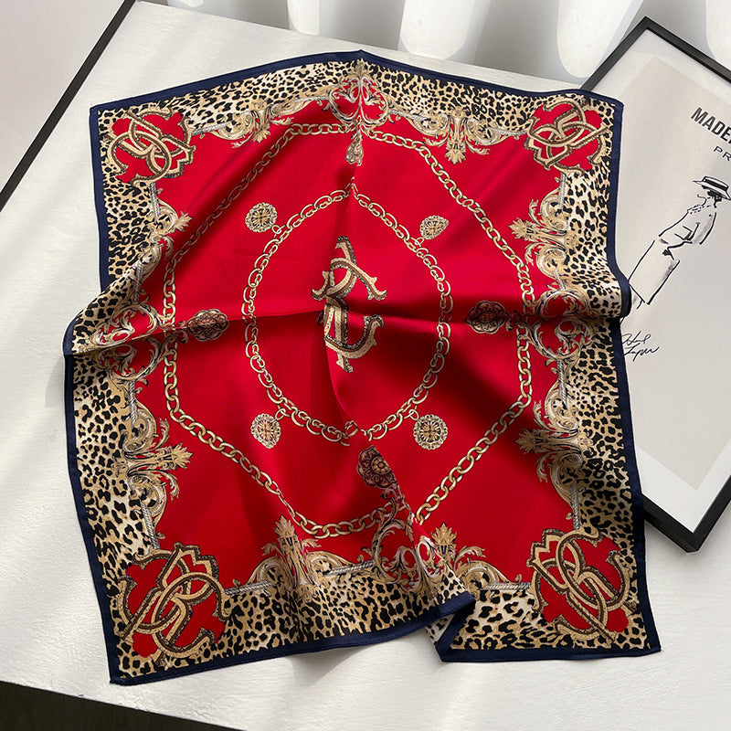 シルクスカーフプリント柄薄手マフラーにブレザーシャツ何とでも合う気質スカーフ