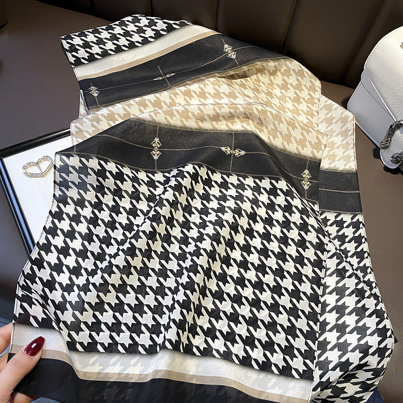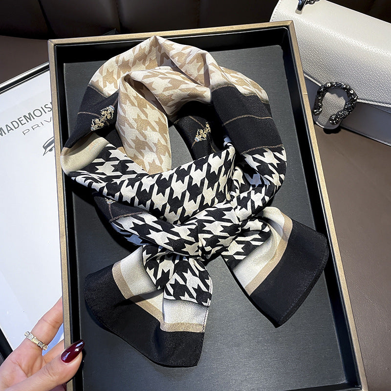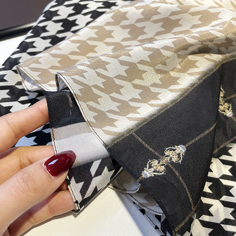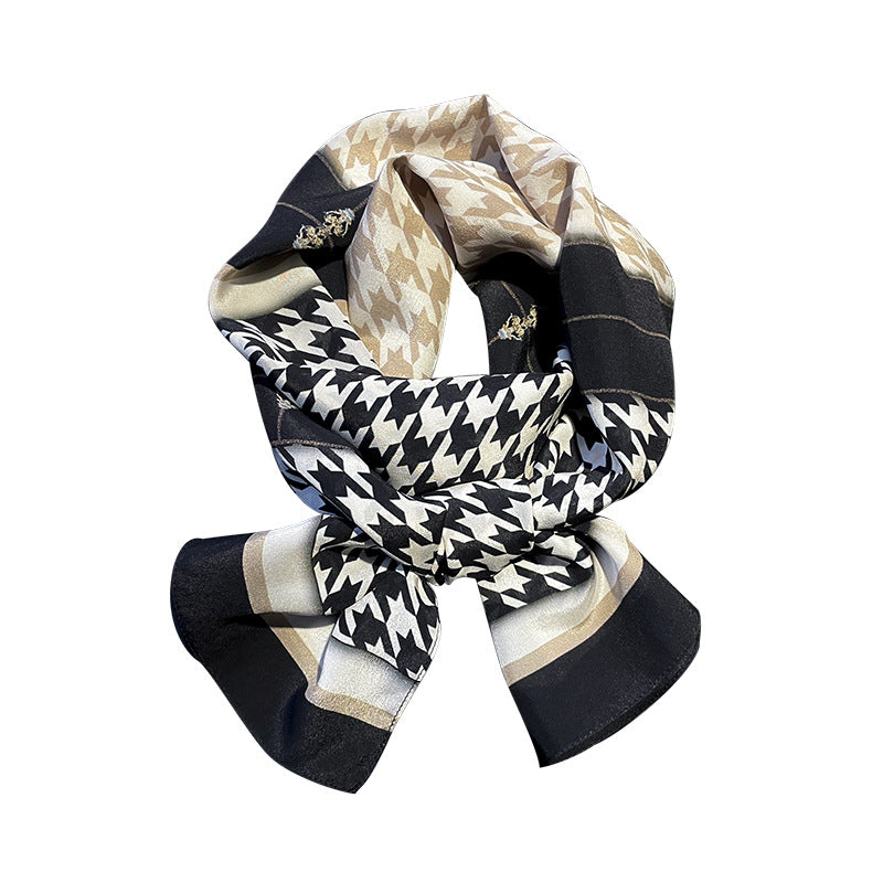 シルクスカーフ千鳥格子カラーマッチングマフラー何とでも合うシルク二重リボンロングスカーフ