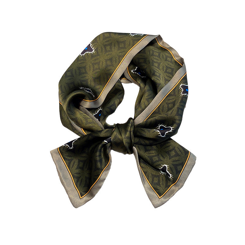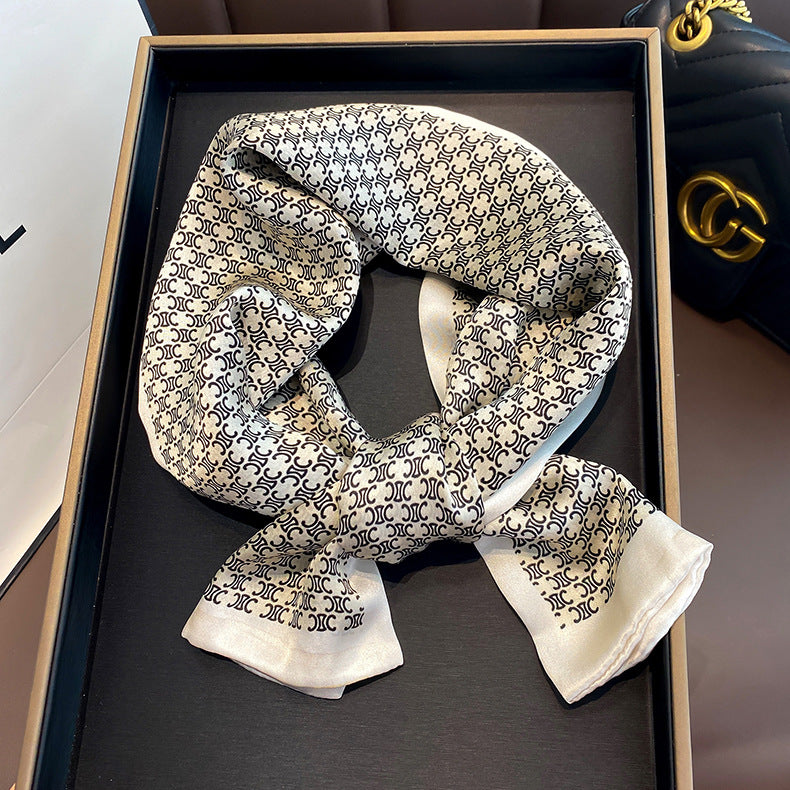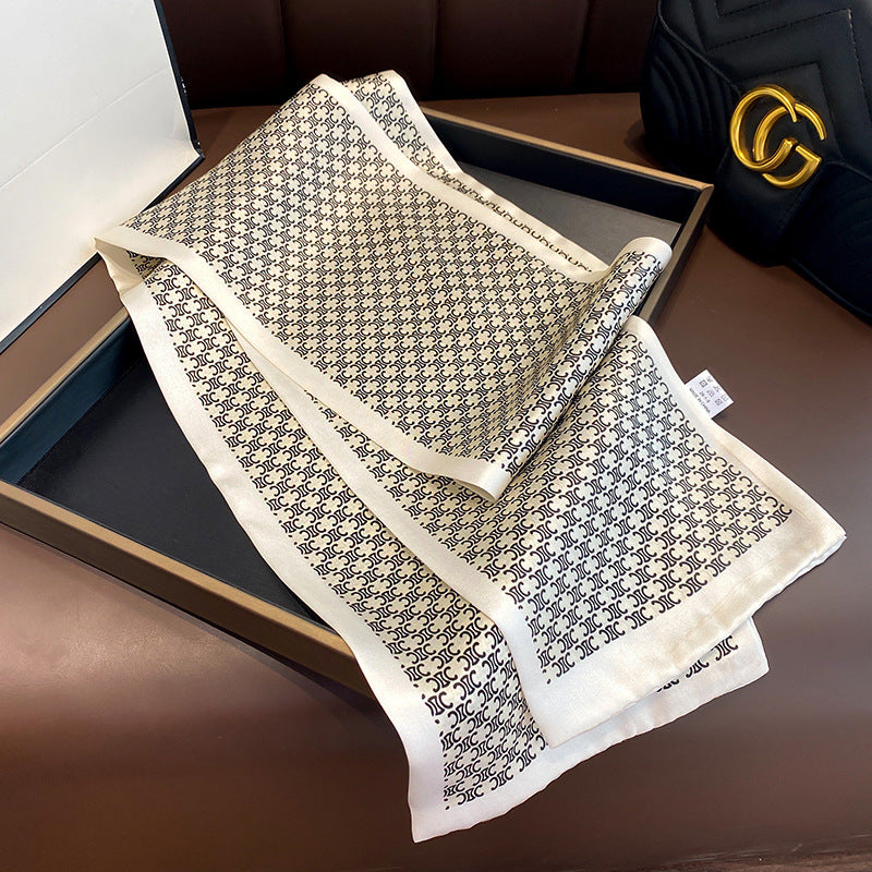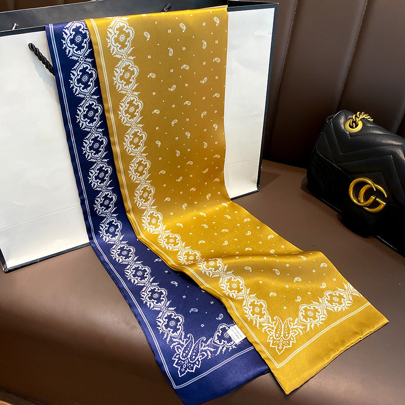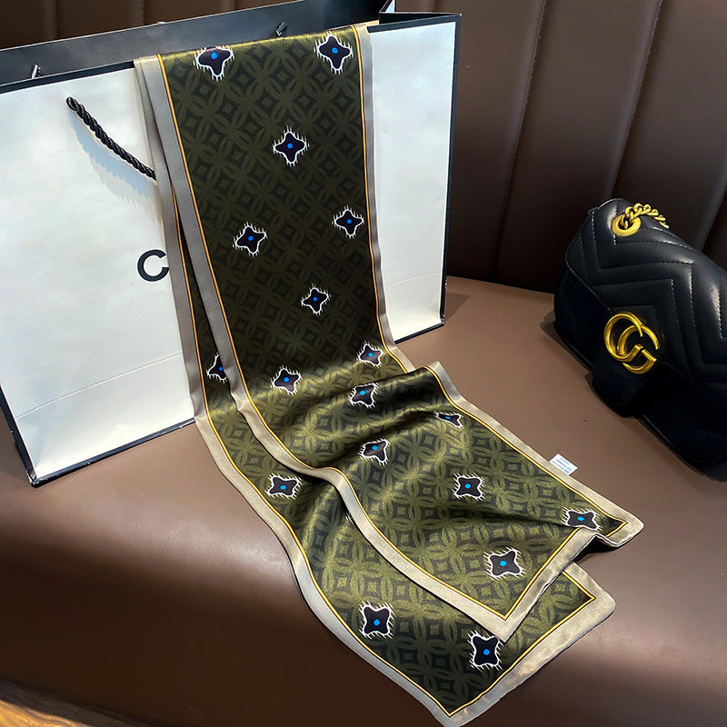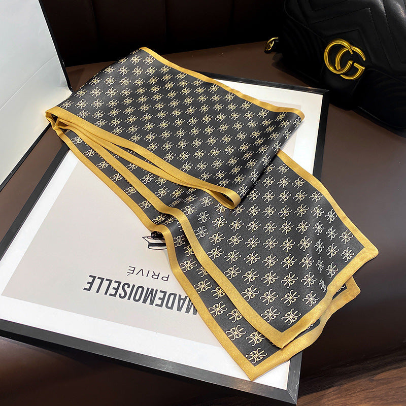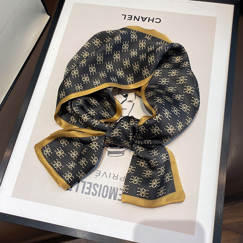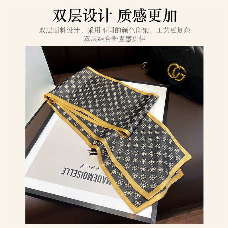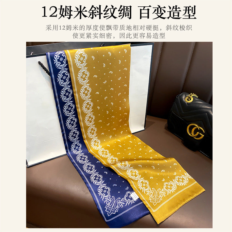 シルクフランス両面ロングスカーフ女性プリント柄ファッションシルク二重リボン