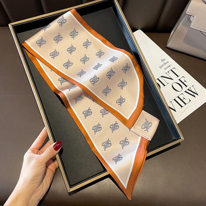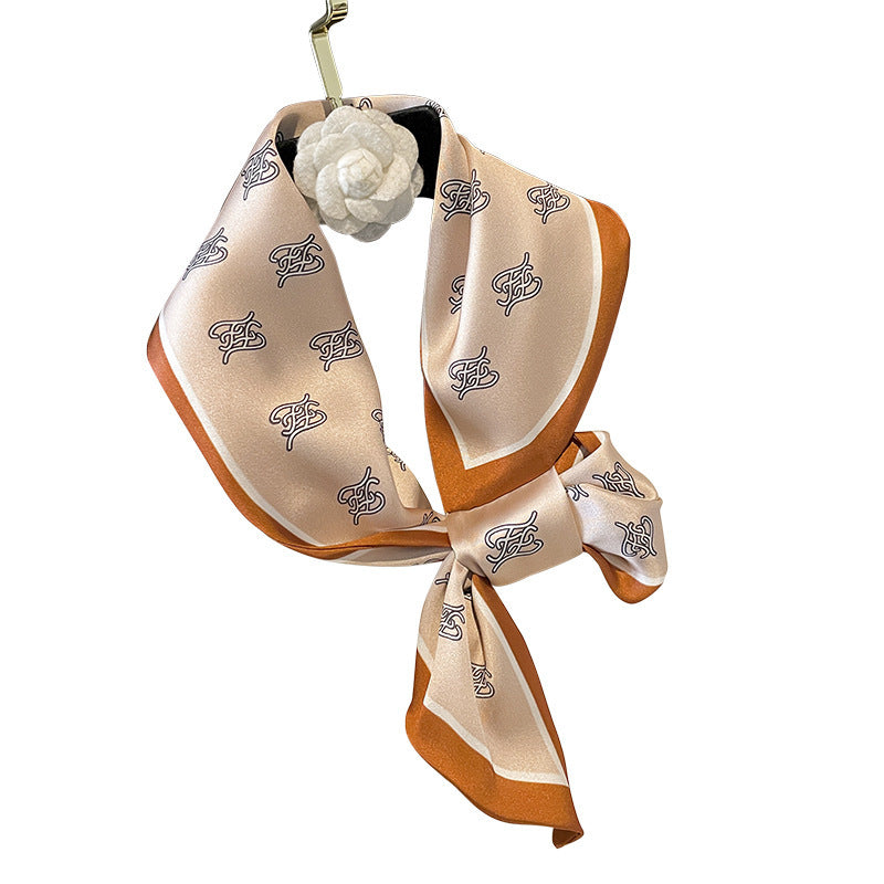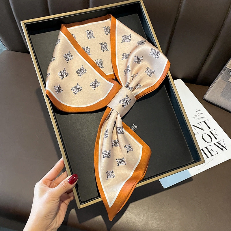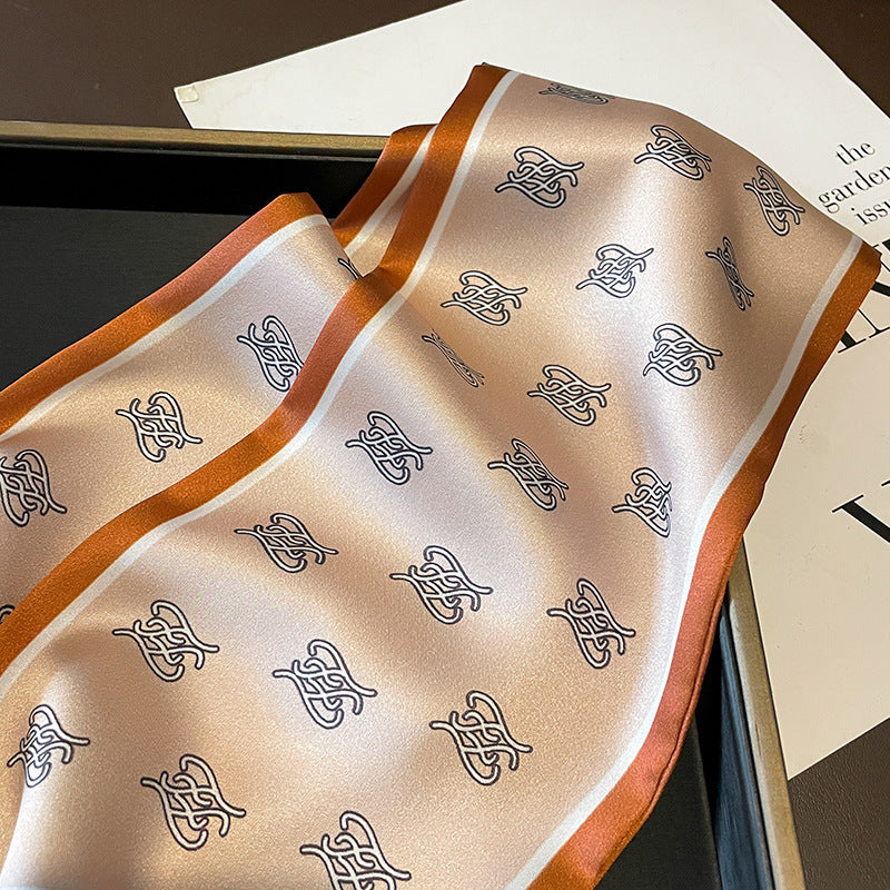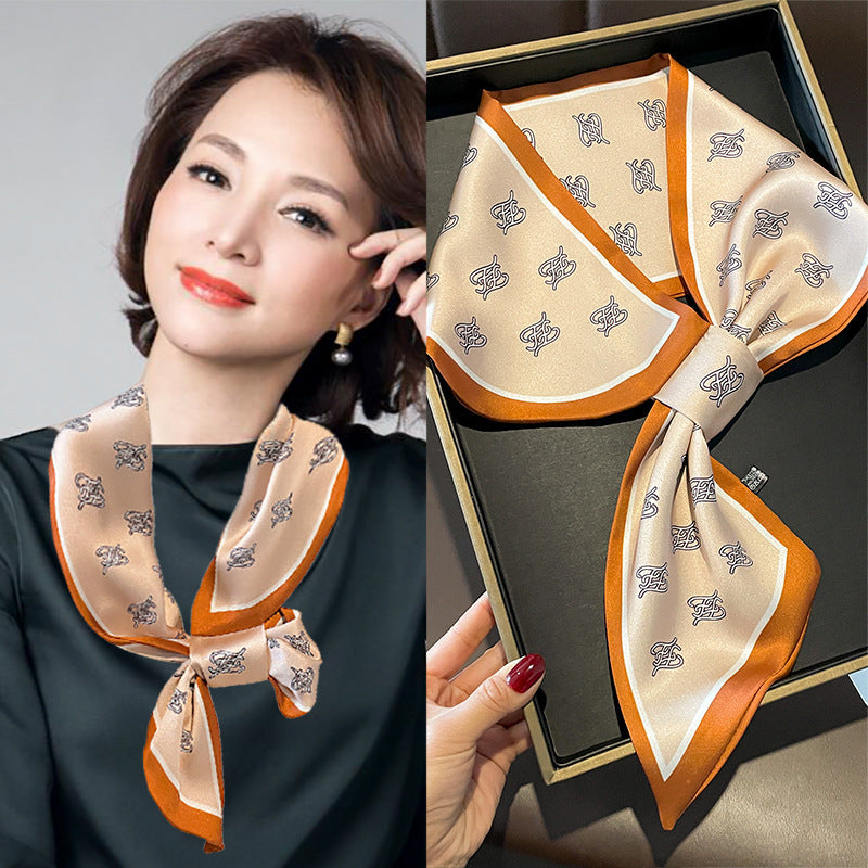 スカーフプリント柄二重サテンクロスオーバスカーフファッションエレガント気質何とでも合うネッカチーフ