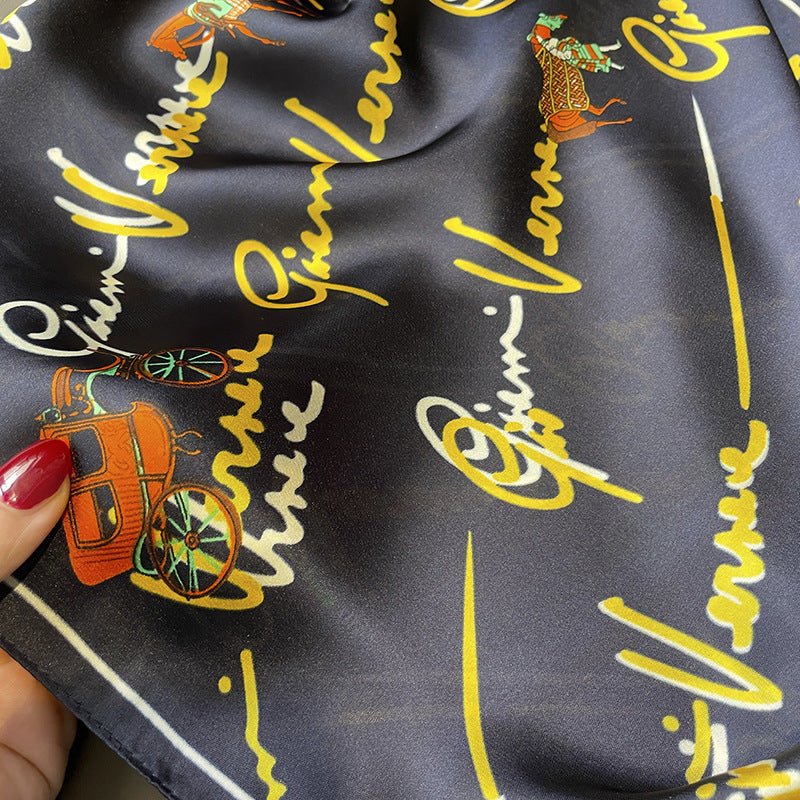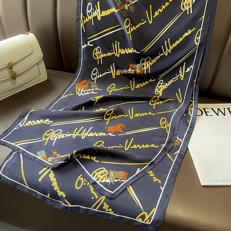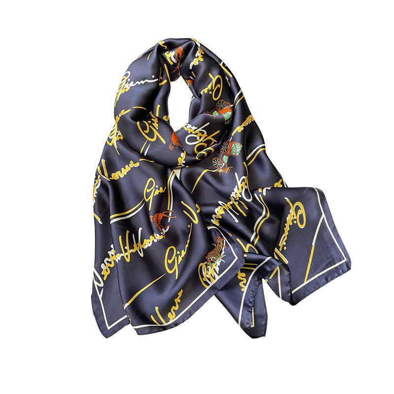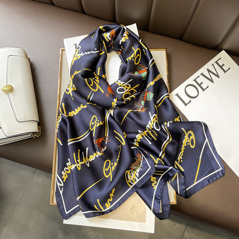 スカーフ字母柄手書きプリント柄シミュレーションシルク長いリボンの大きなリボンファッションスカーフ枚