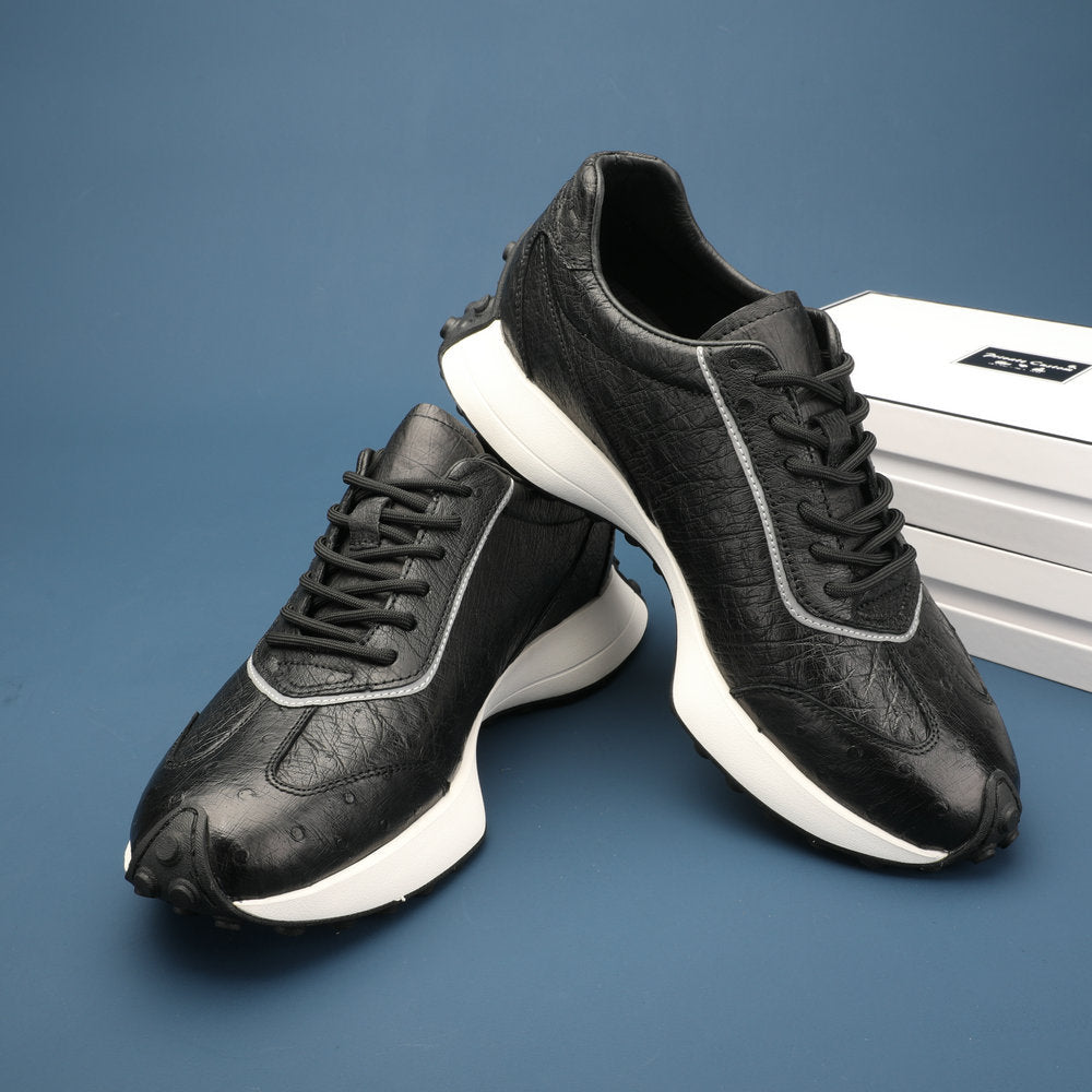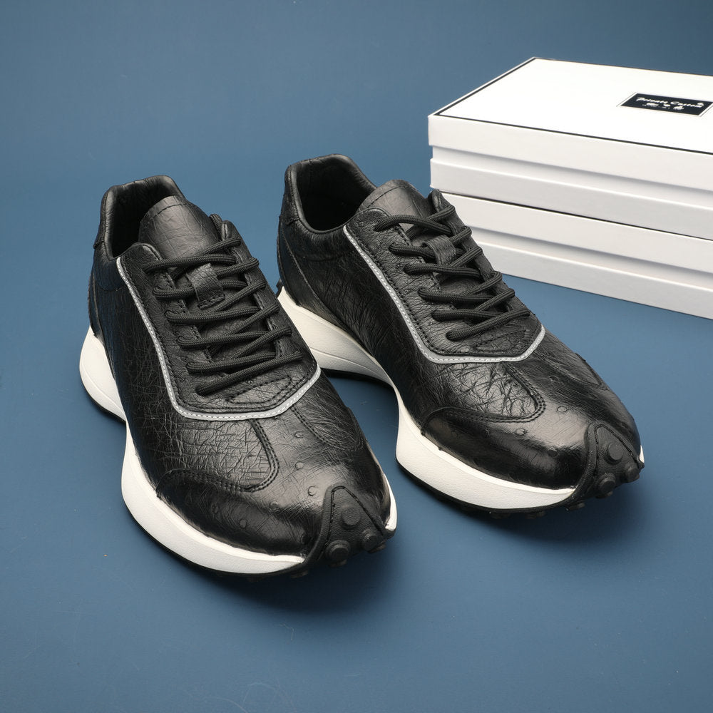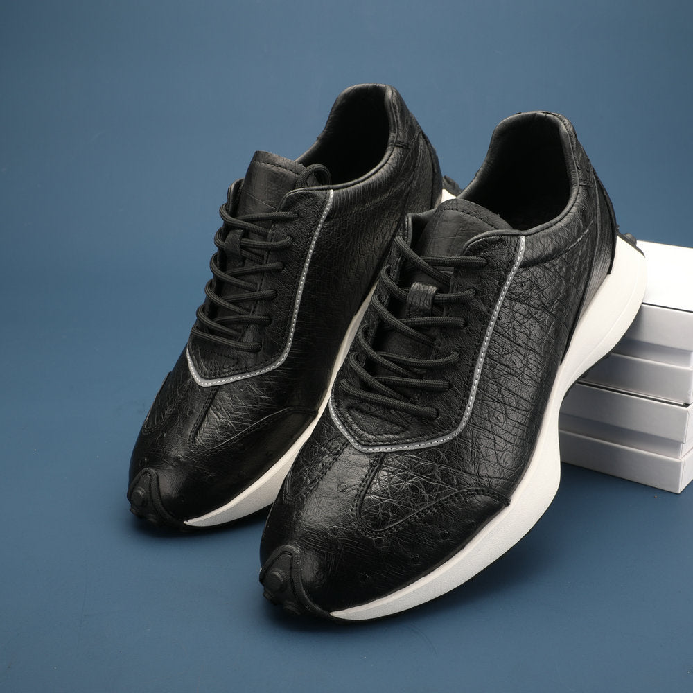 ダチョウ皮 男性靴 本革 耐摩耗 滑り止め ファッションスポーツカジュアルシューズ