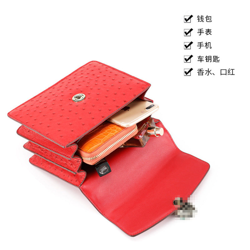 ダチョウ革のハンドバッグカジュアルなオールインワンショルダーバッグはチェーンバッグを斜めにまたぐことができます