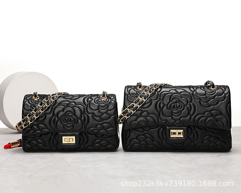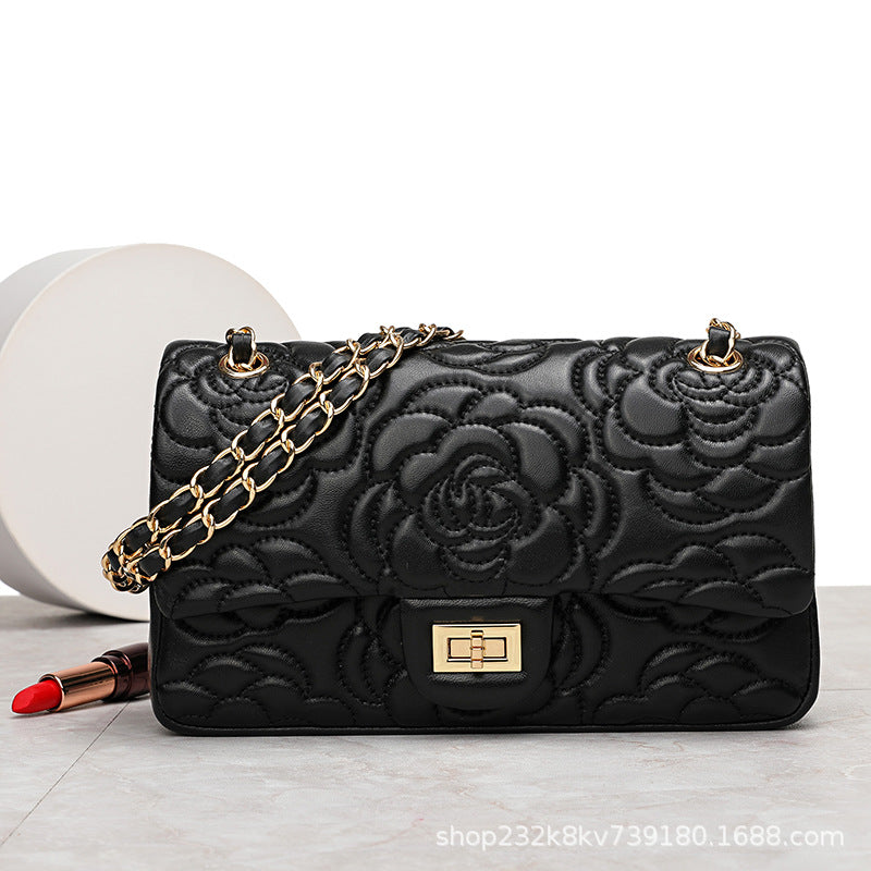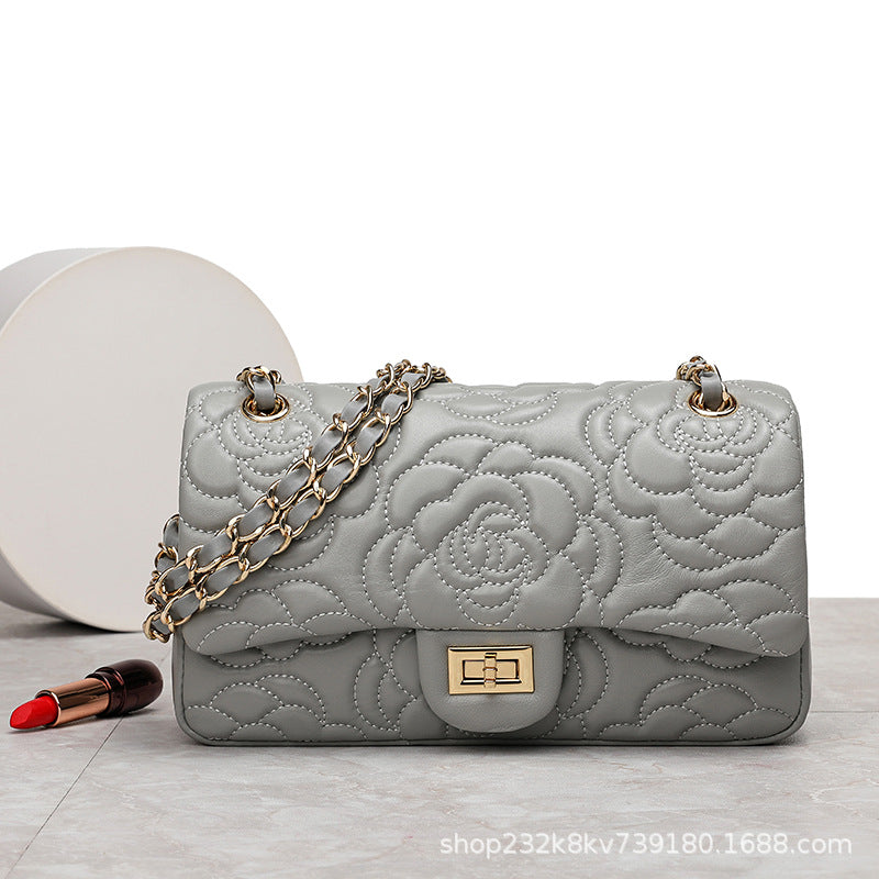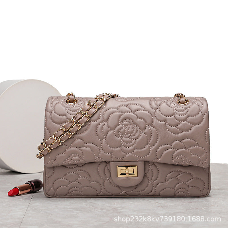 ヒツジ革レディースバッグ花柄チェーンバッグ本革ファッション何とでも合うショルダーバッグ.ポシェット
