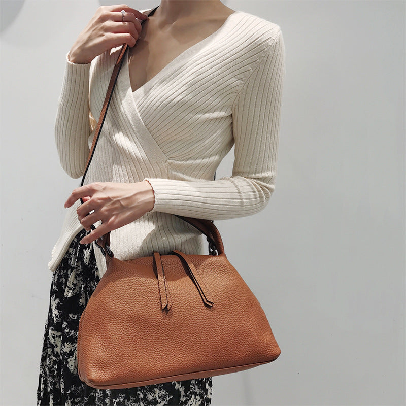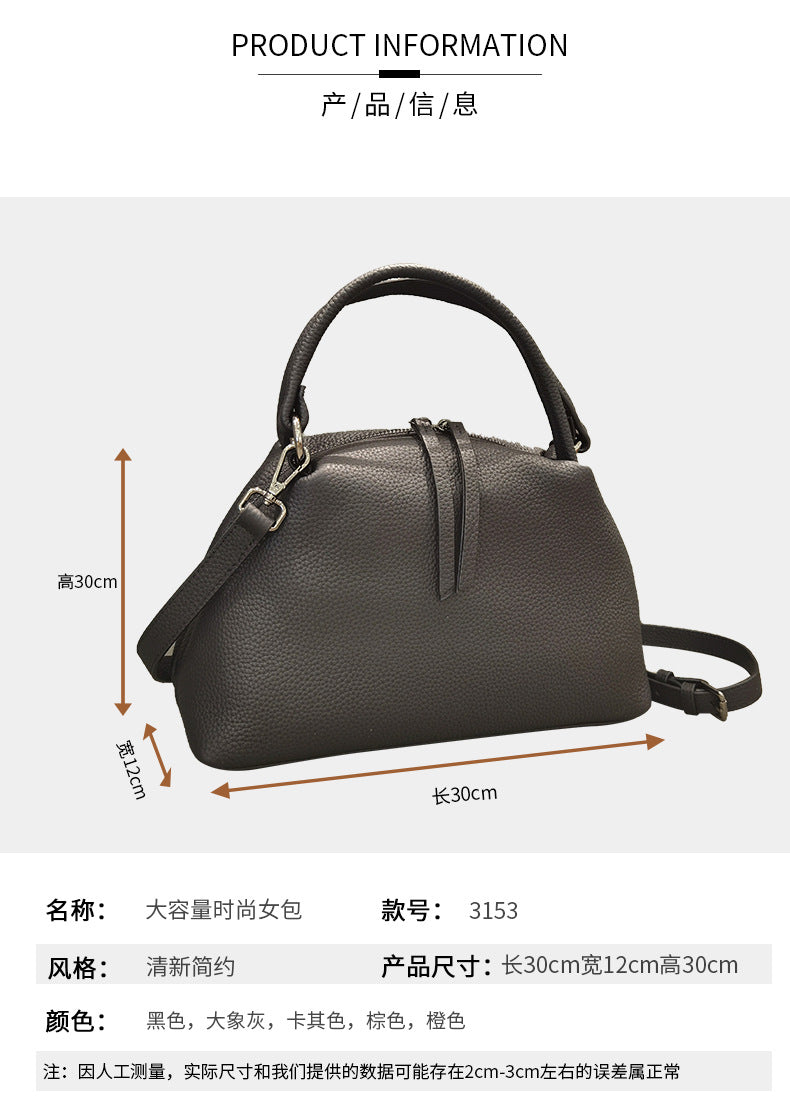 ファスナー牛革トートバッグシンプルレディースバッグ大容量ハンドバッグショルダーバッグ斜めショルダーバッグ