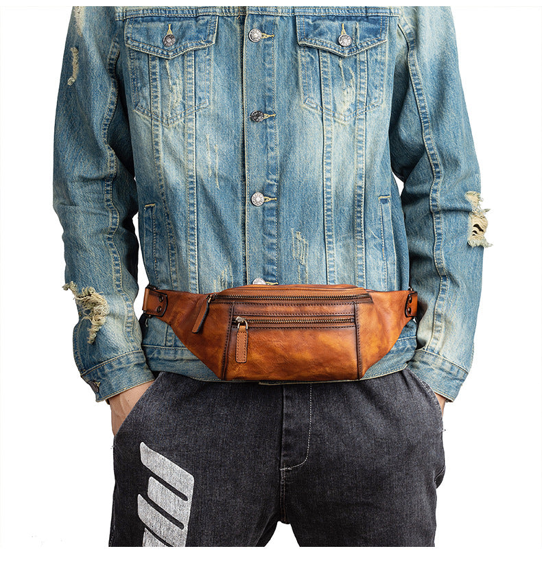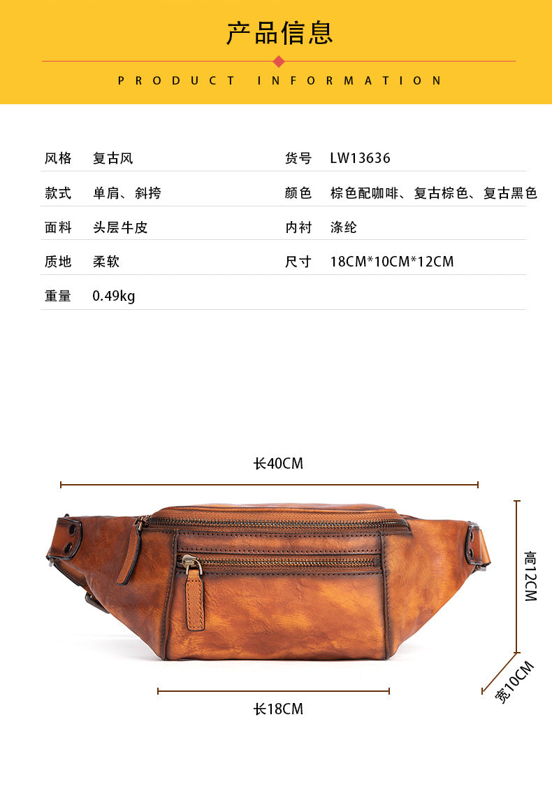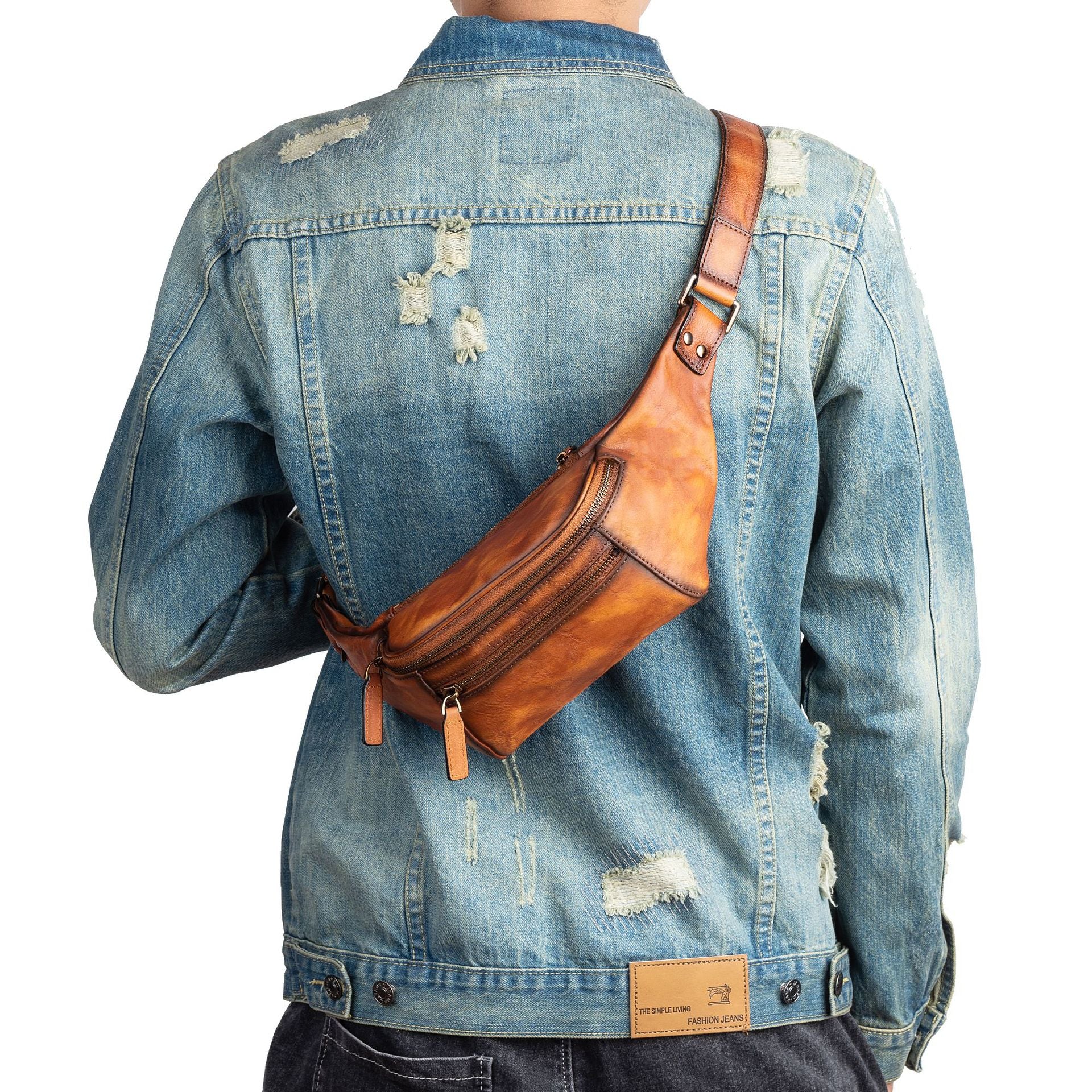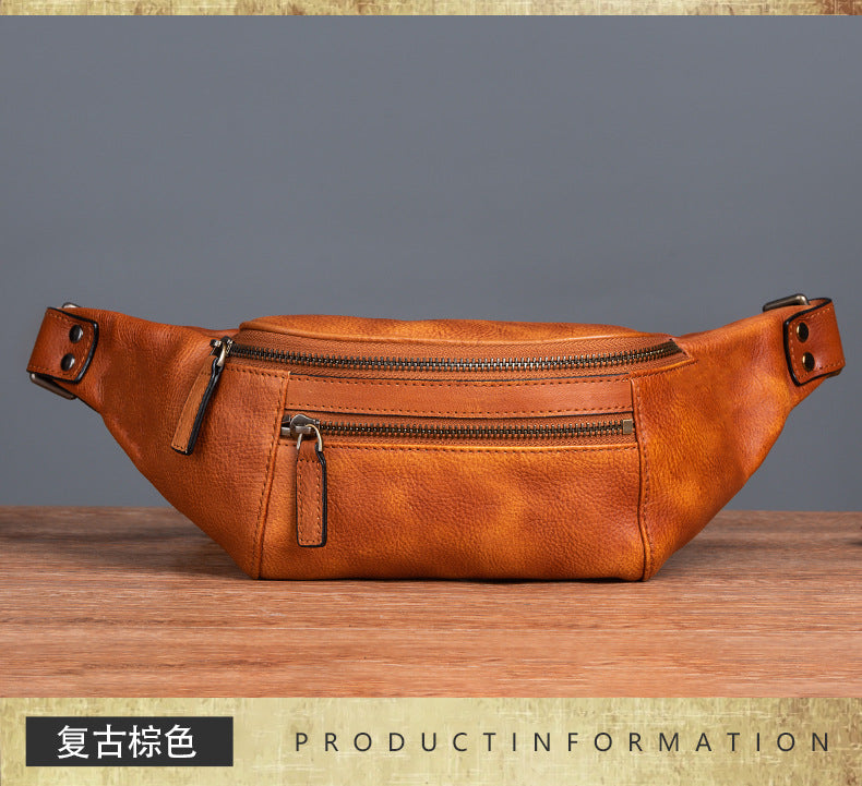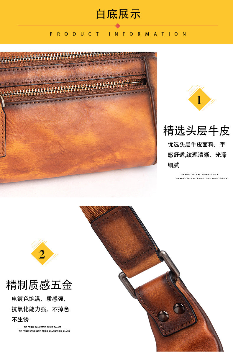 メンズウエストポーチ牛革本革製レトロカジュアル男性バッグ