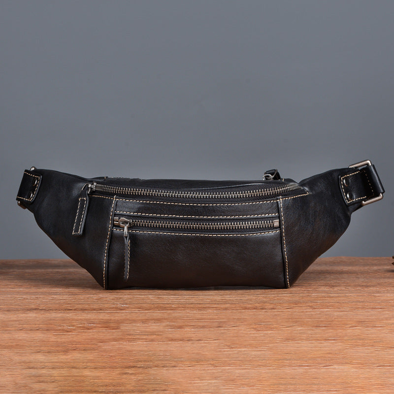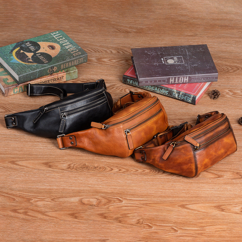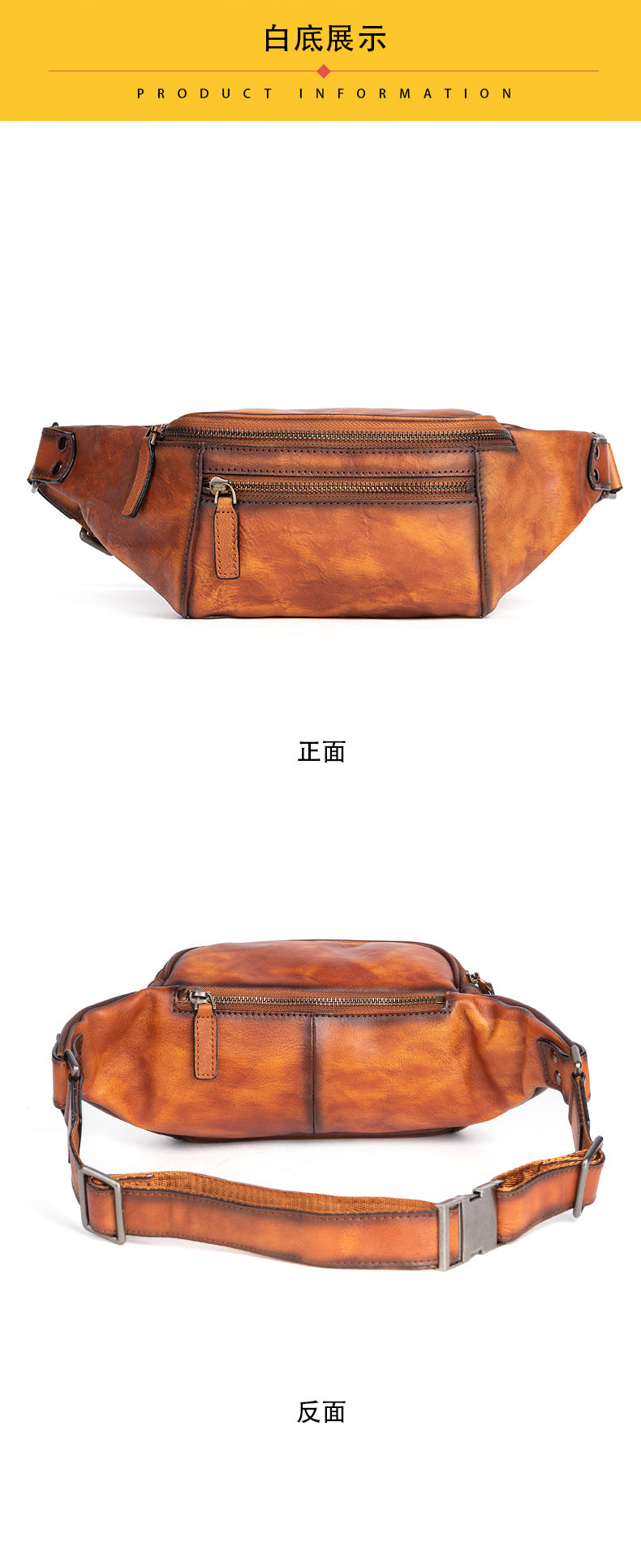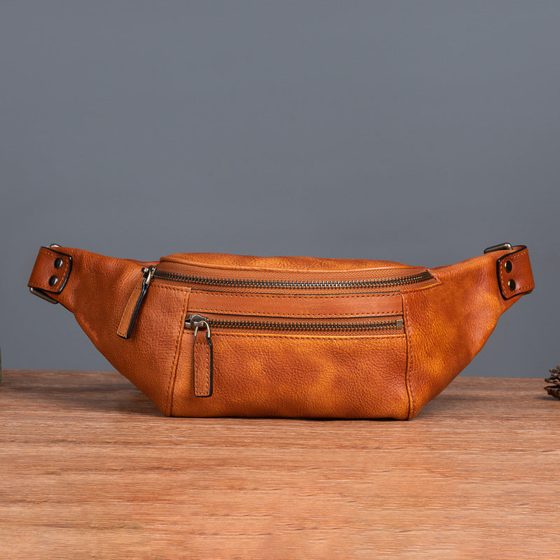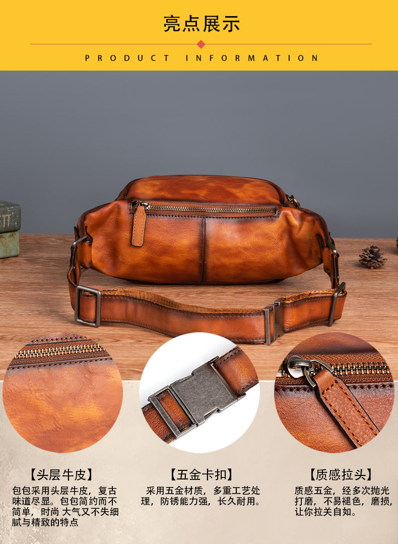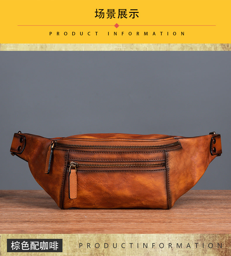 メンズウエストポーチ牛革本革製レトロカジュアル男性バッグ