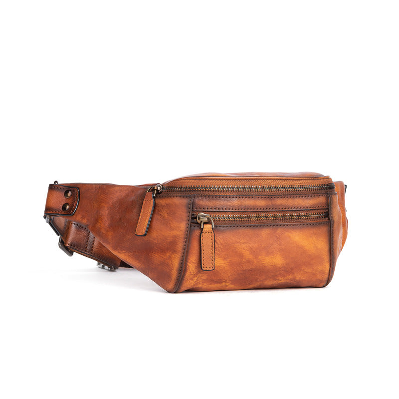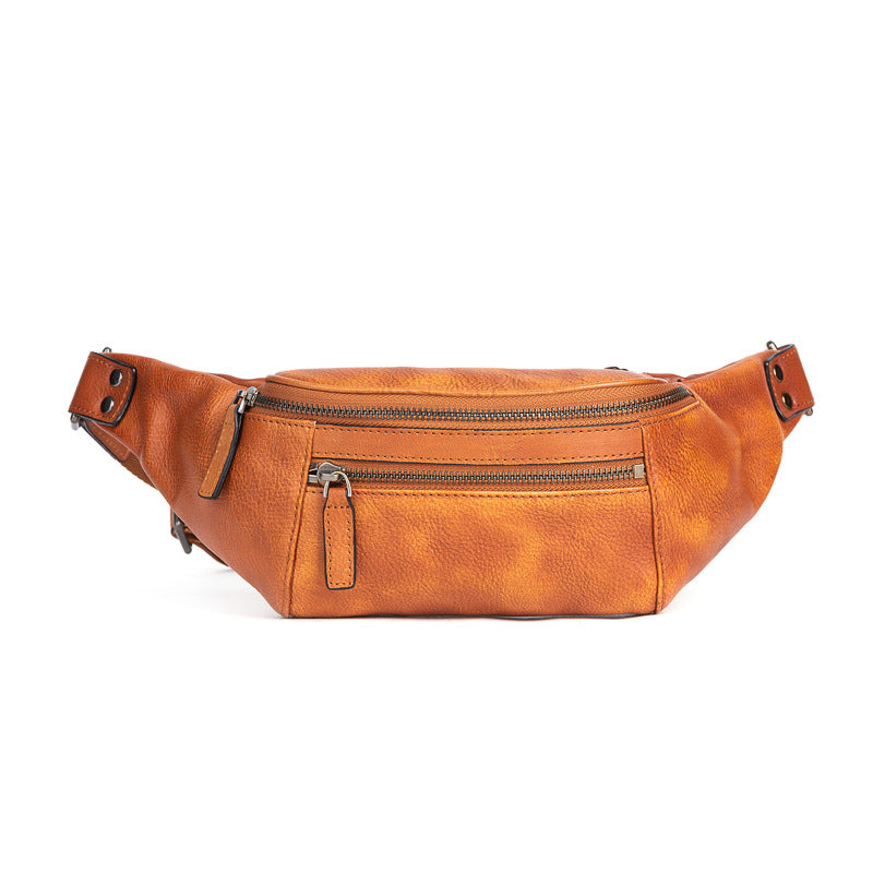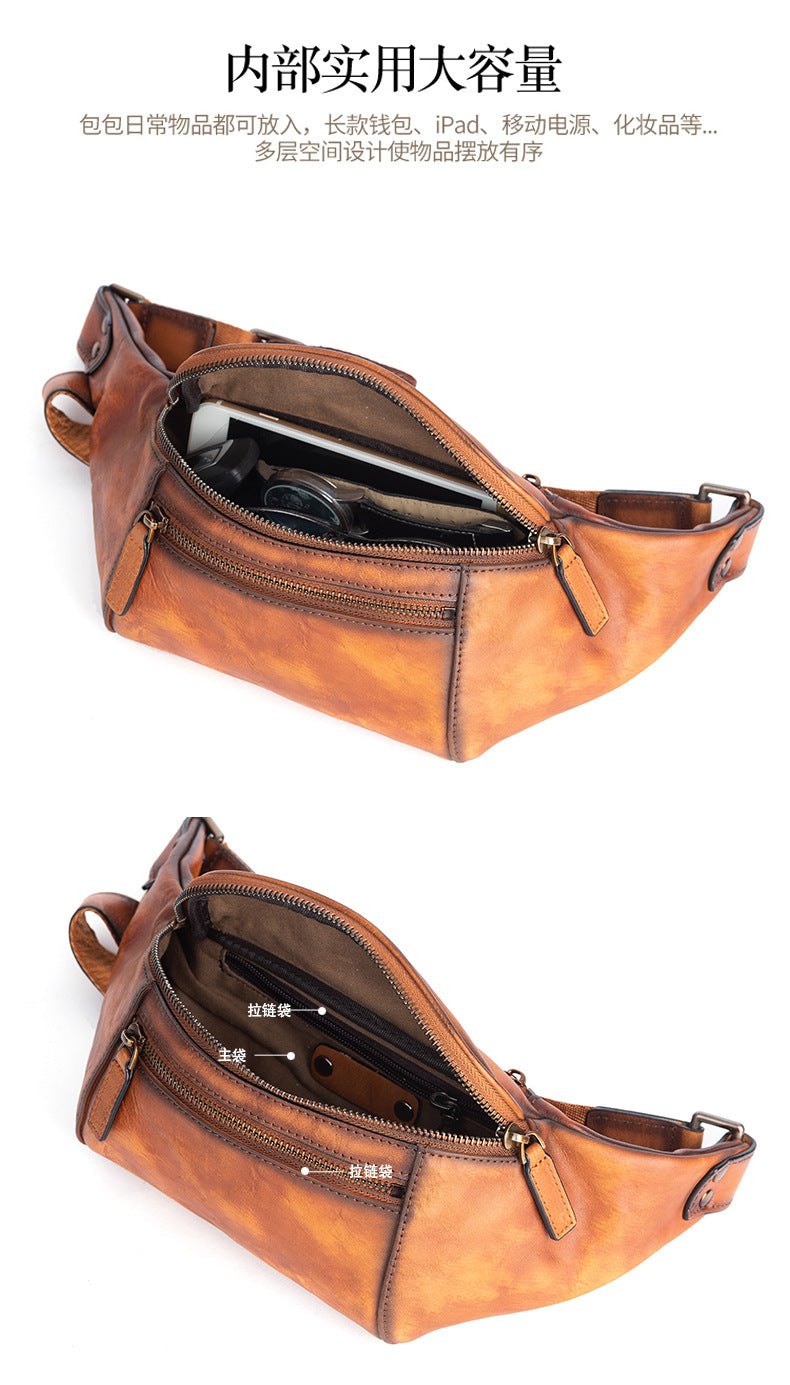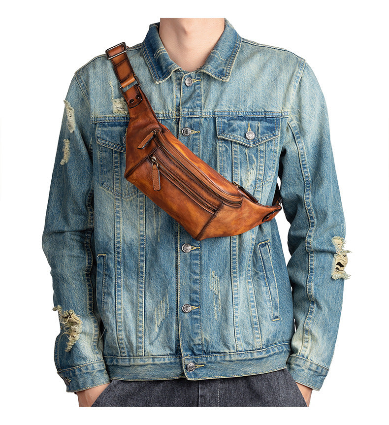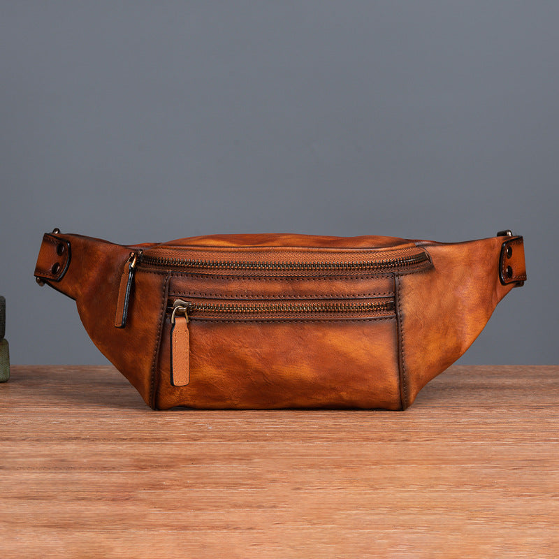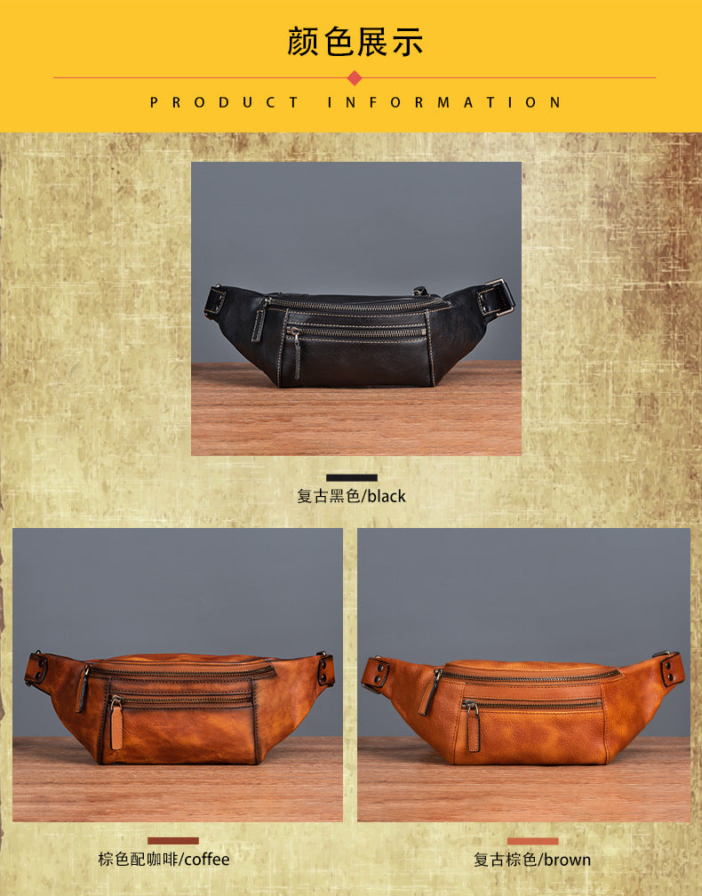 メンズウエストポーチ牛革本革製レトロカジュアル男性バッグ