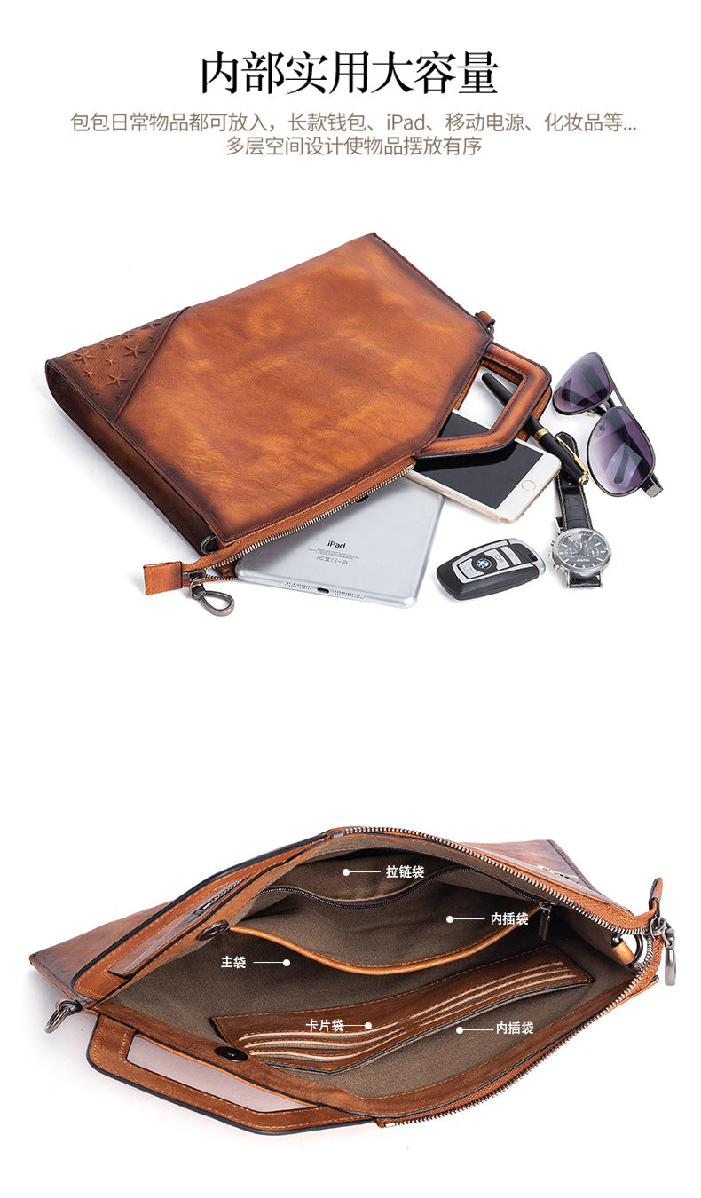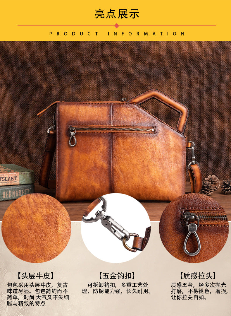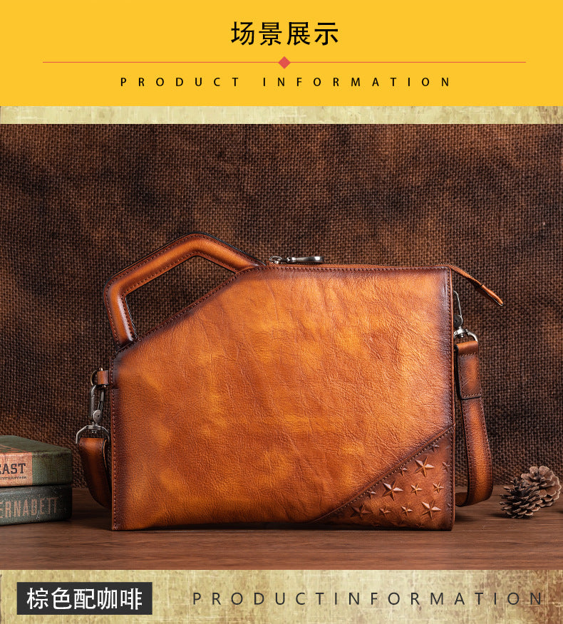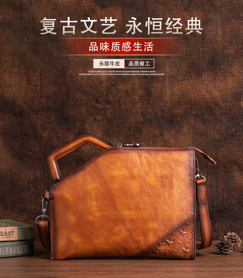 メンズクラッチバッグ牛革個性カジュアル男性用斜めがけバッグハンドバッグ
