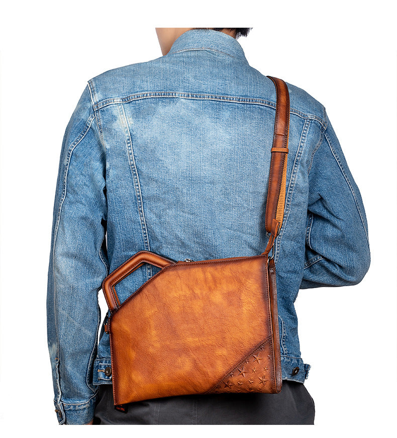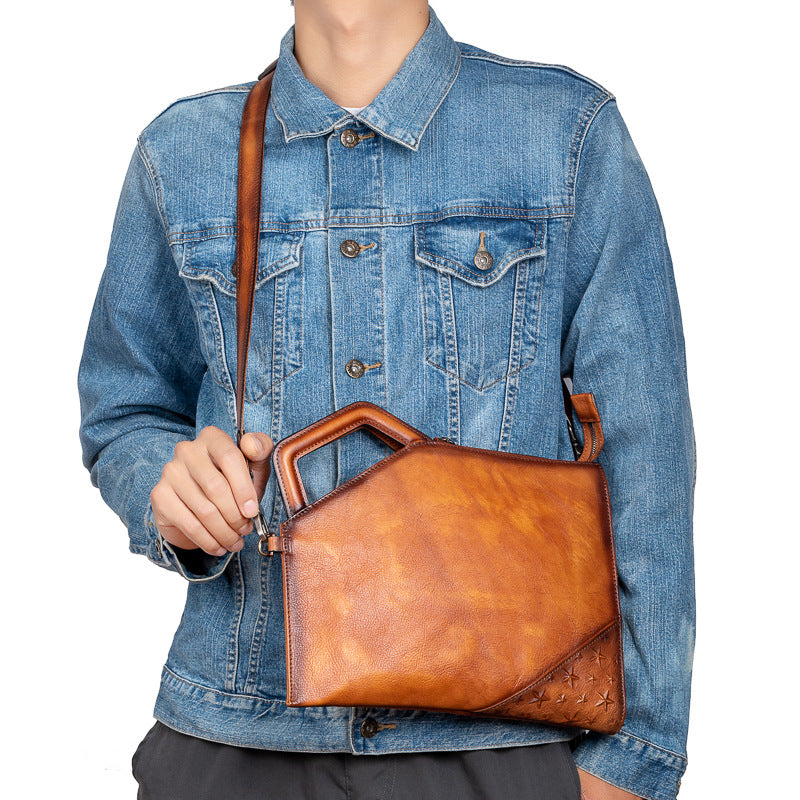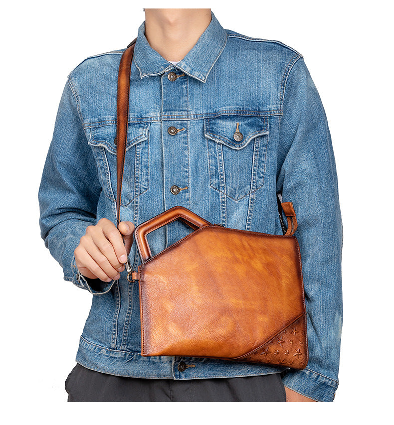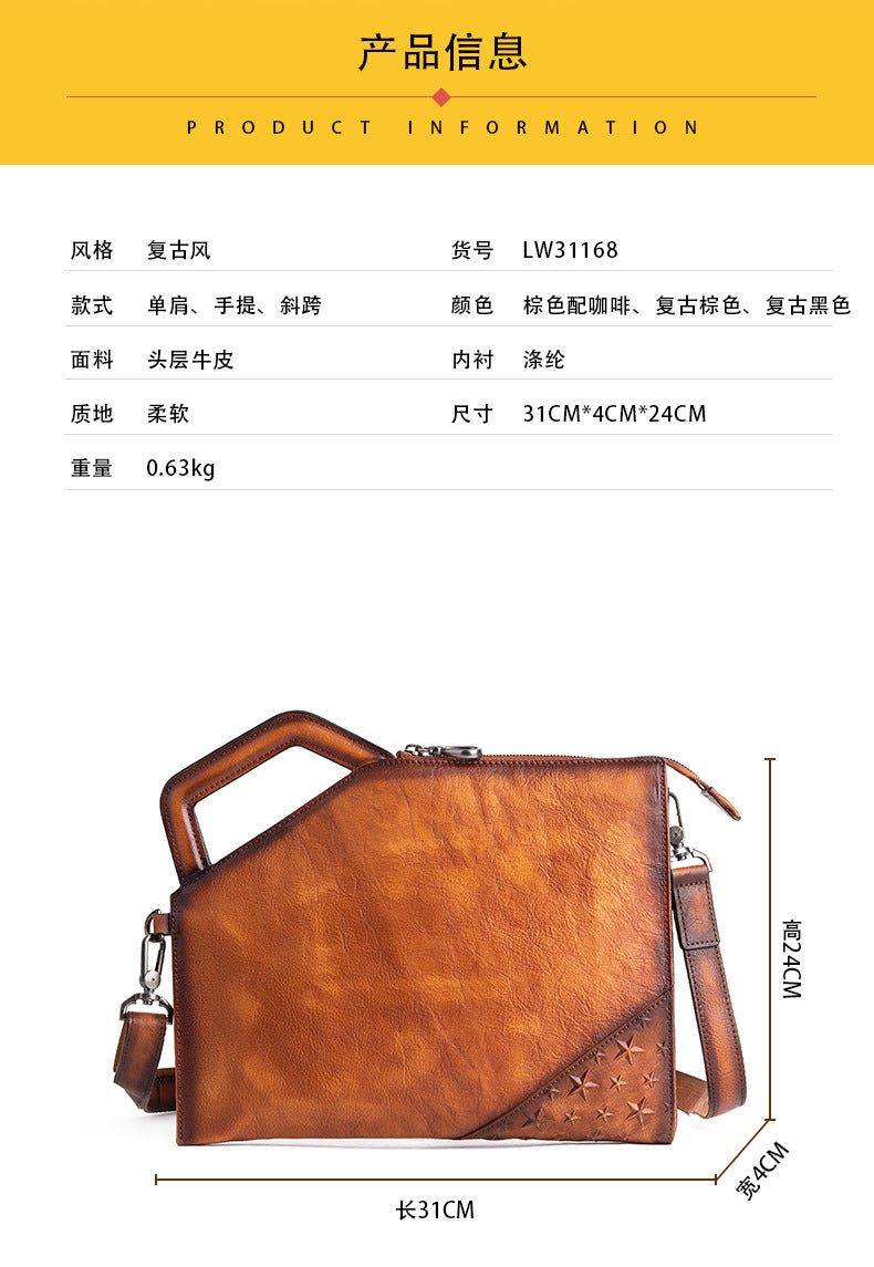 メンズクラッチバッグ牛革個性カジュアル男性用斜めがけバッグハンドバッグ