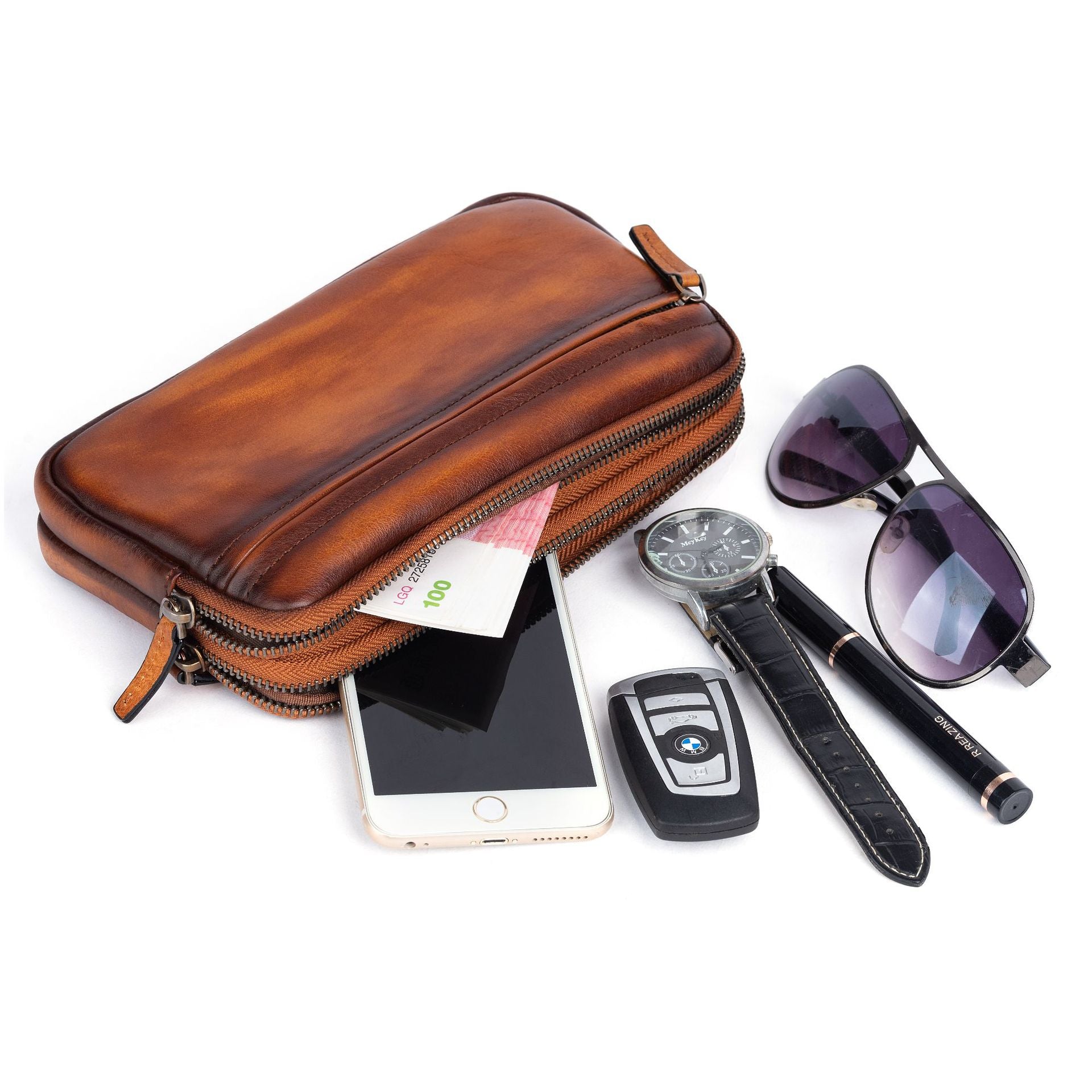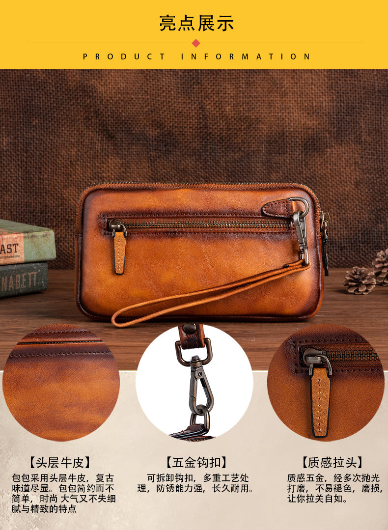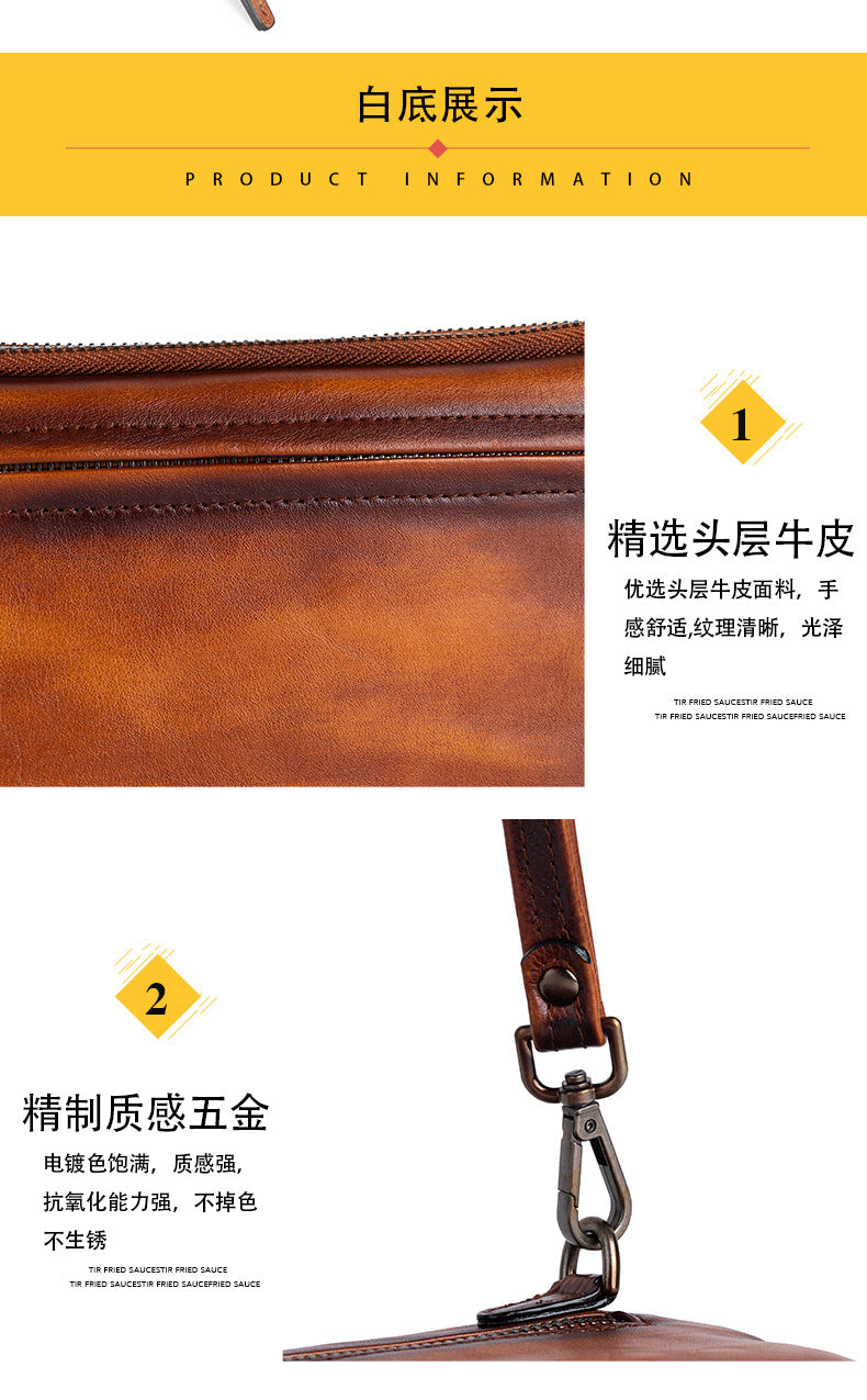 メンズクラッチバッグ牛革本革製カジュアル男性用ハンドバッグ