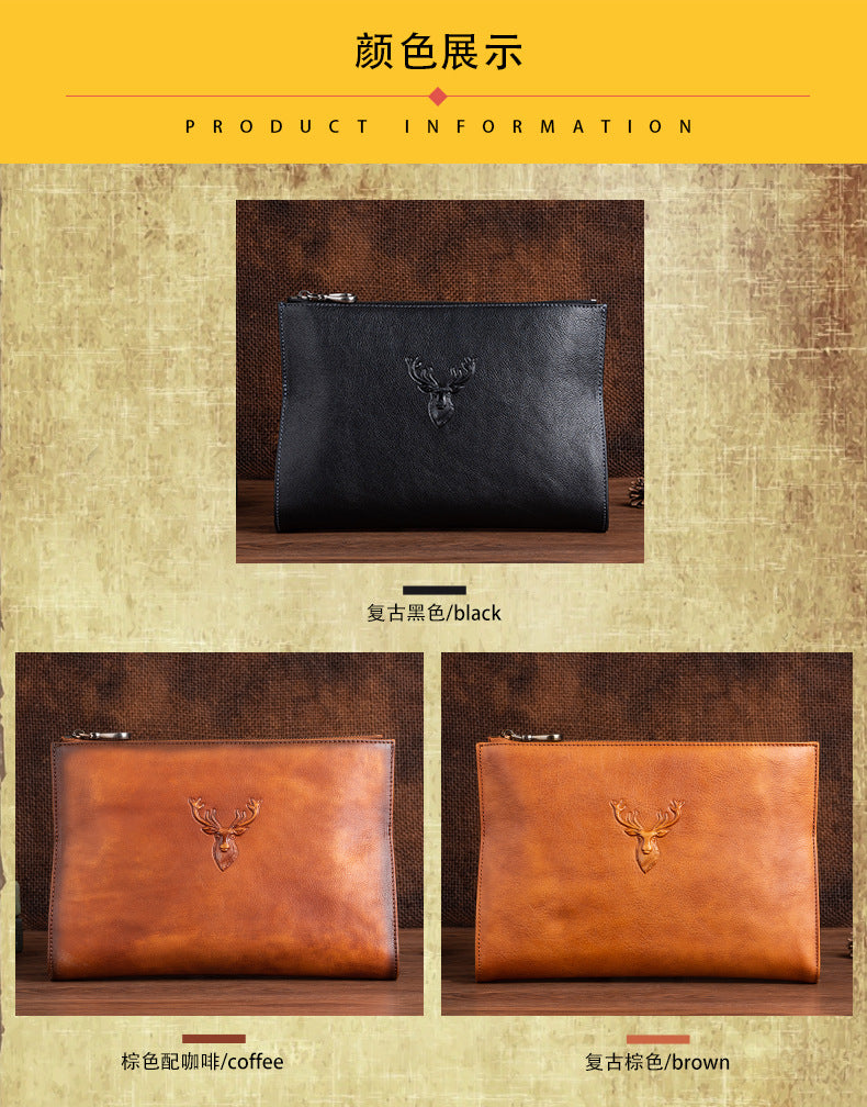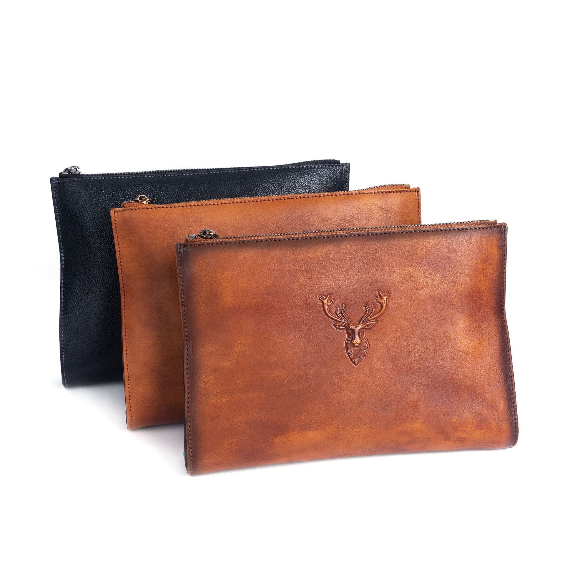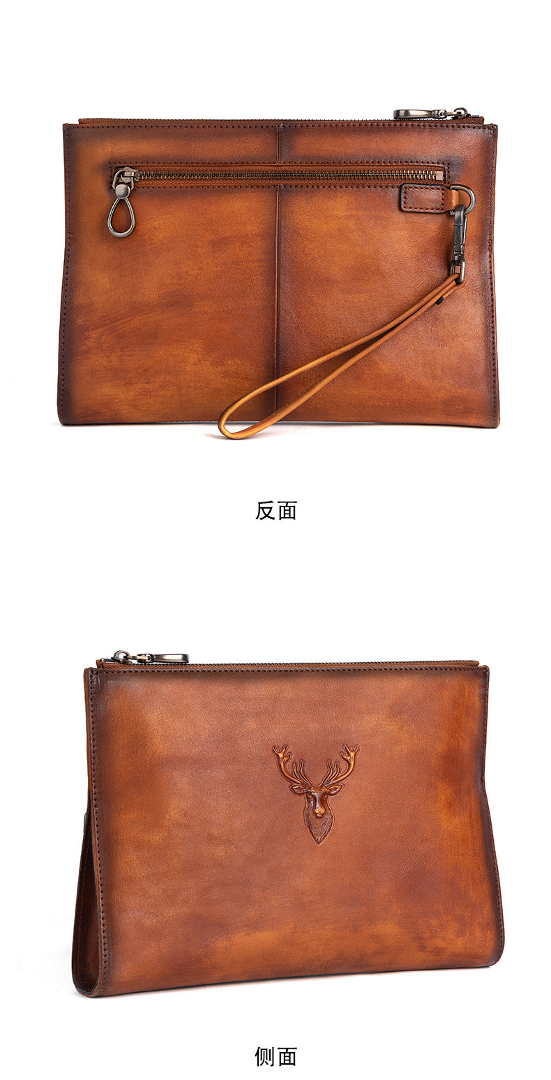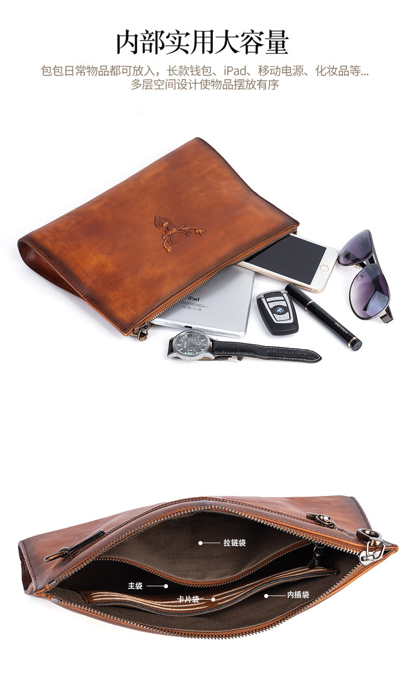 メンズクラッチバッグ牛革本革製レトロカジュアル男性用ハンドバッグ