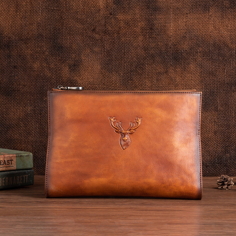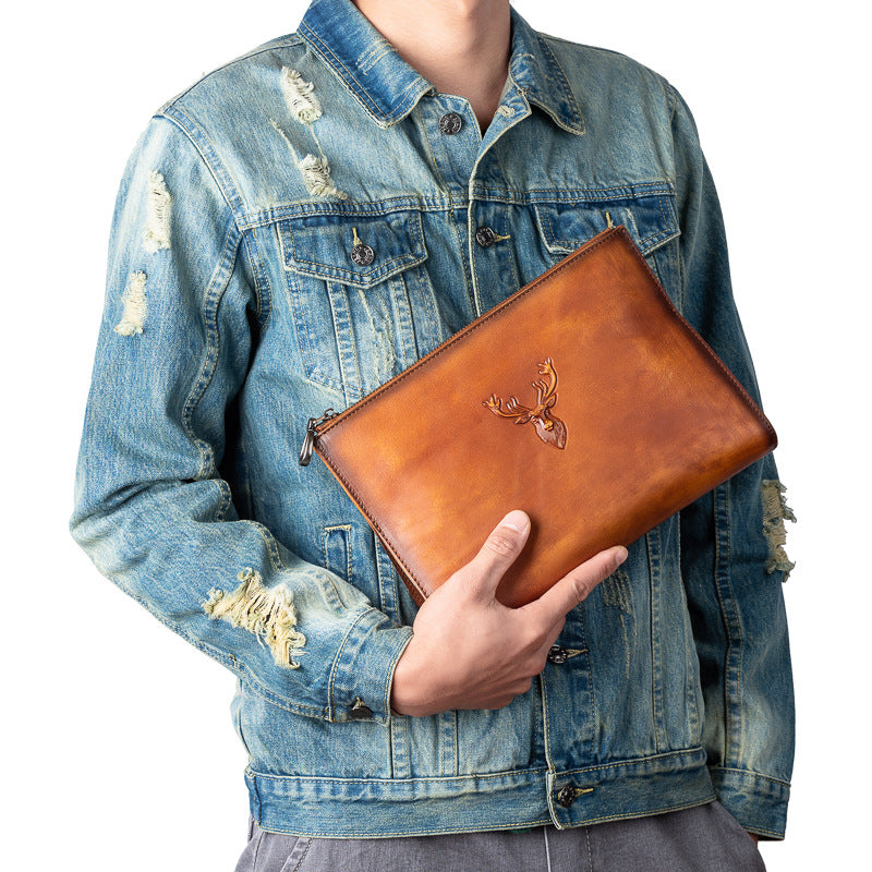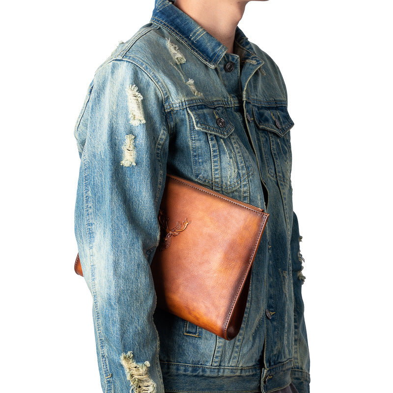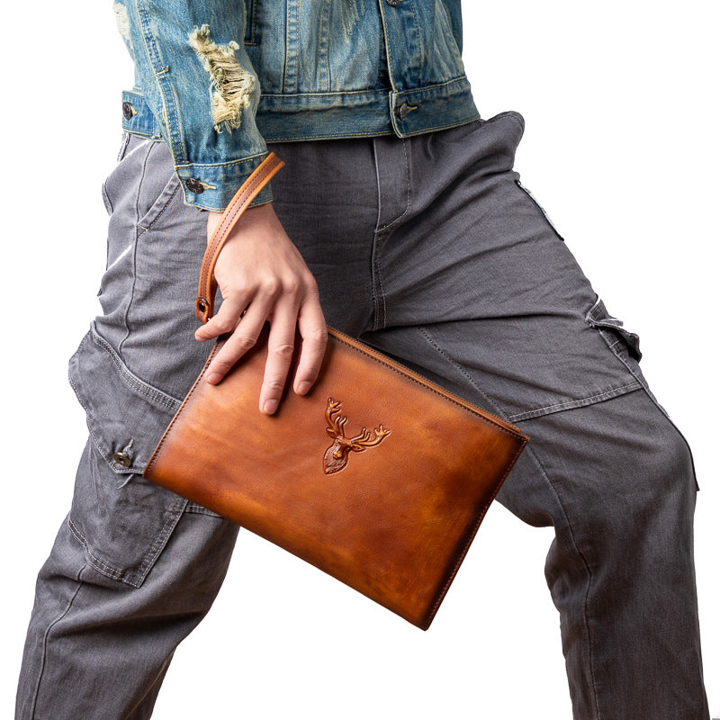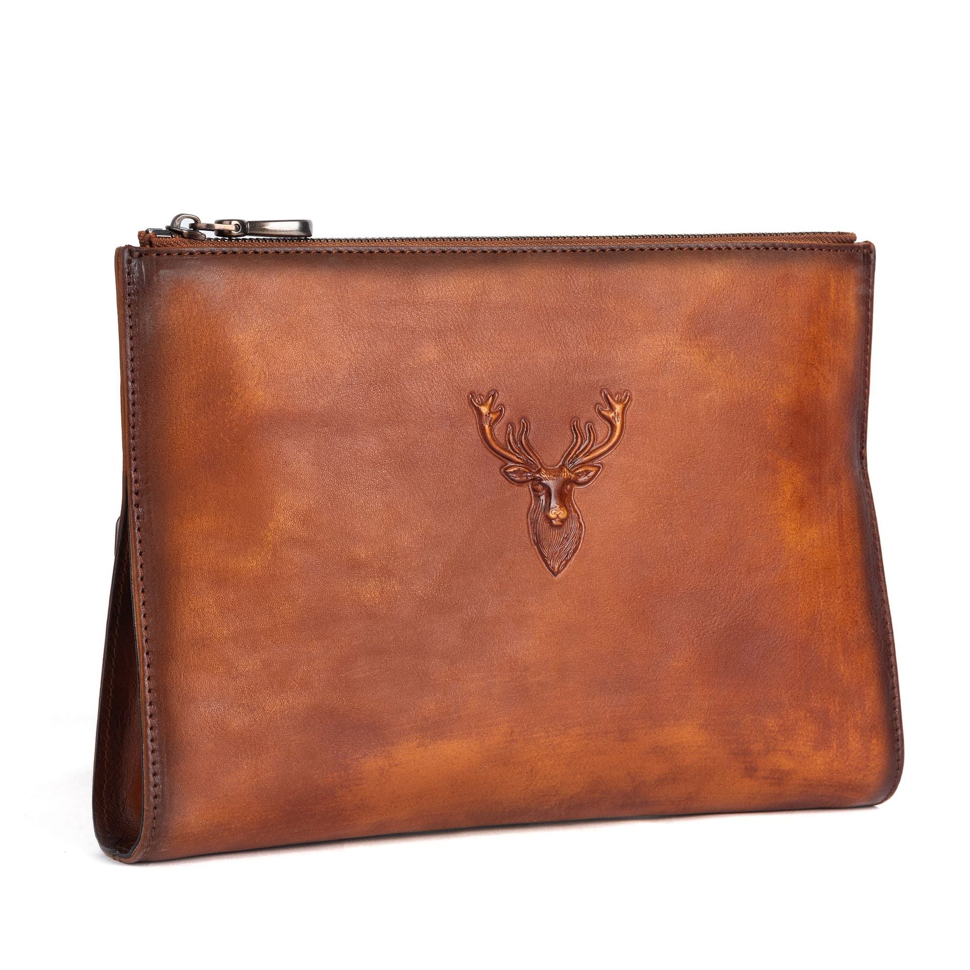 メンズクラッチバッグ牛革本革製レトロカジュアル男性用ハンドバッグ