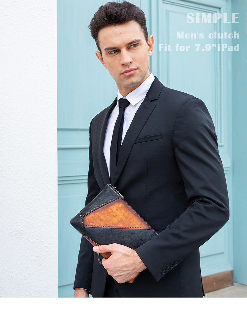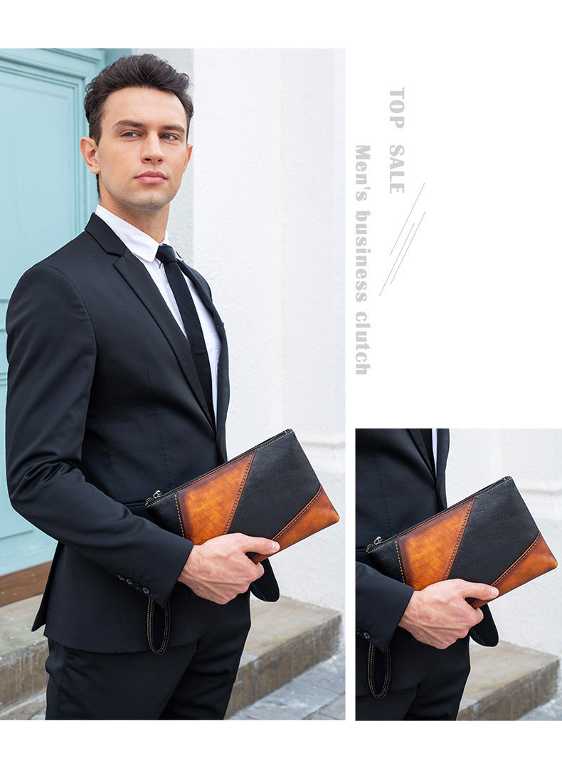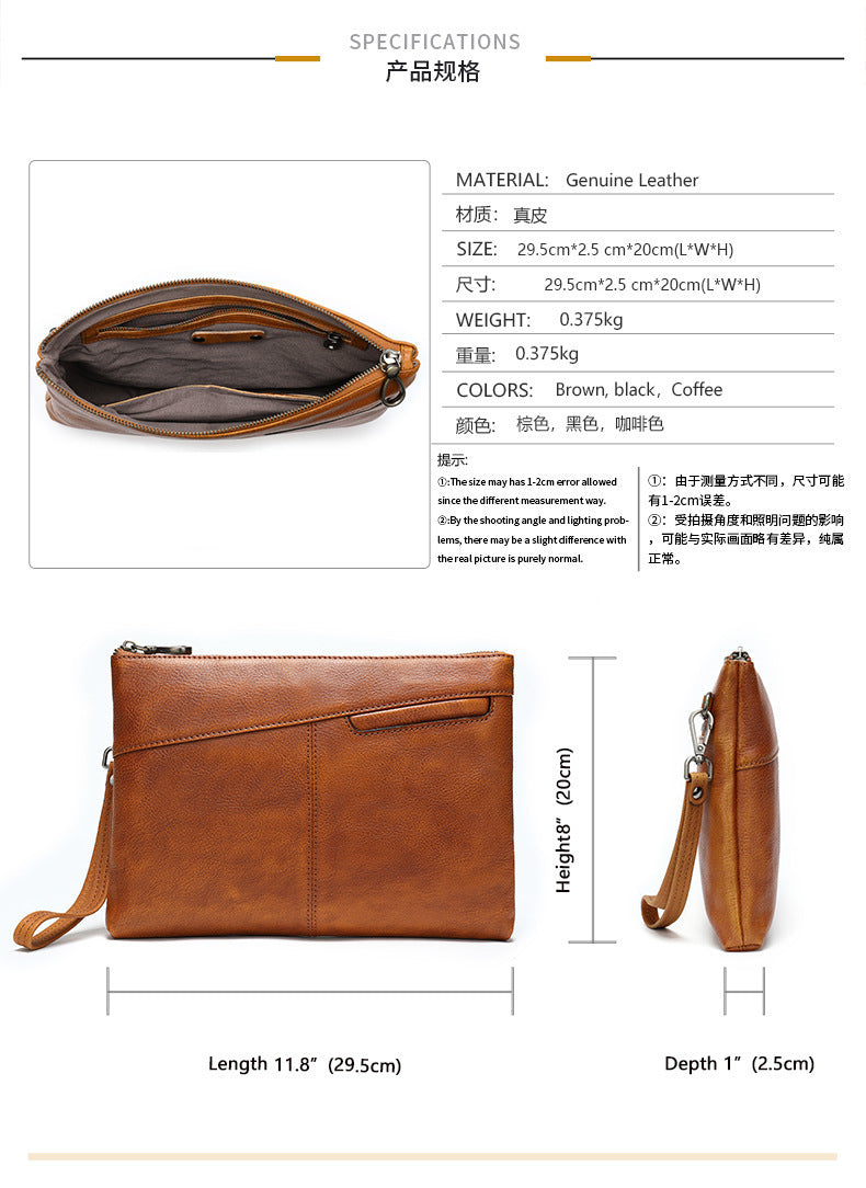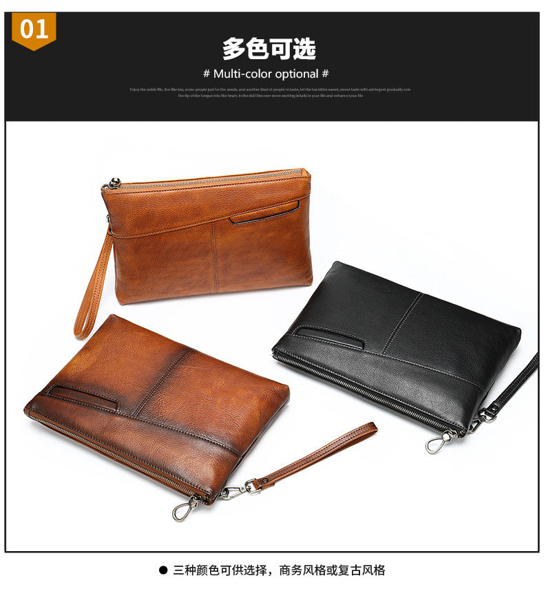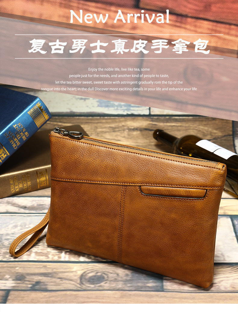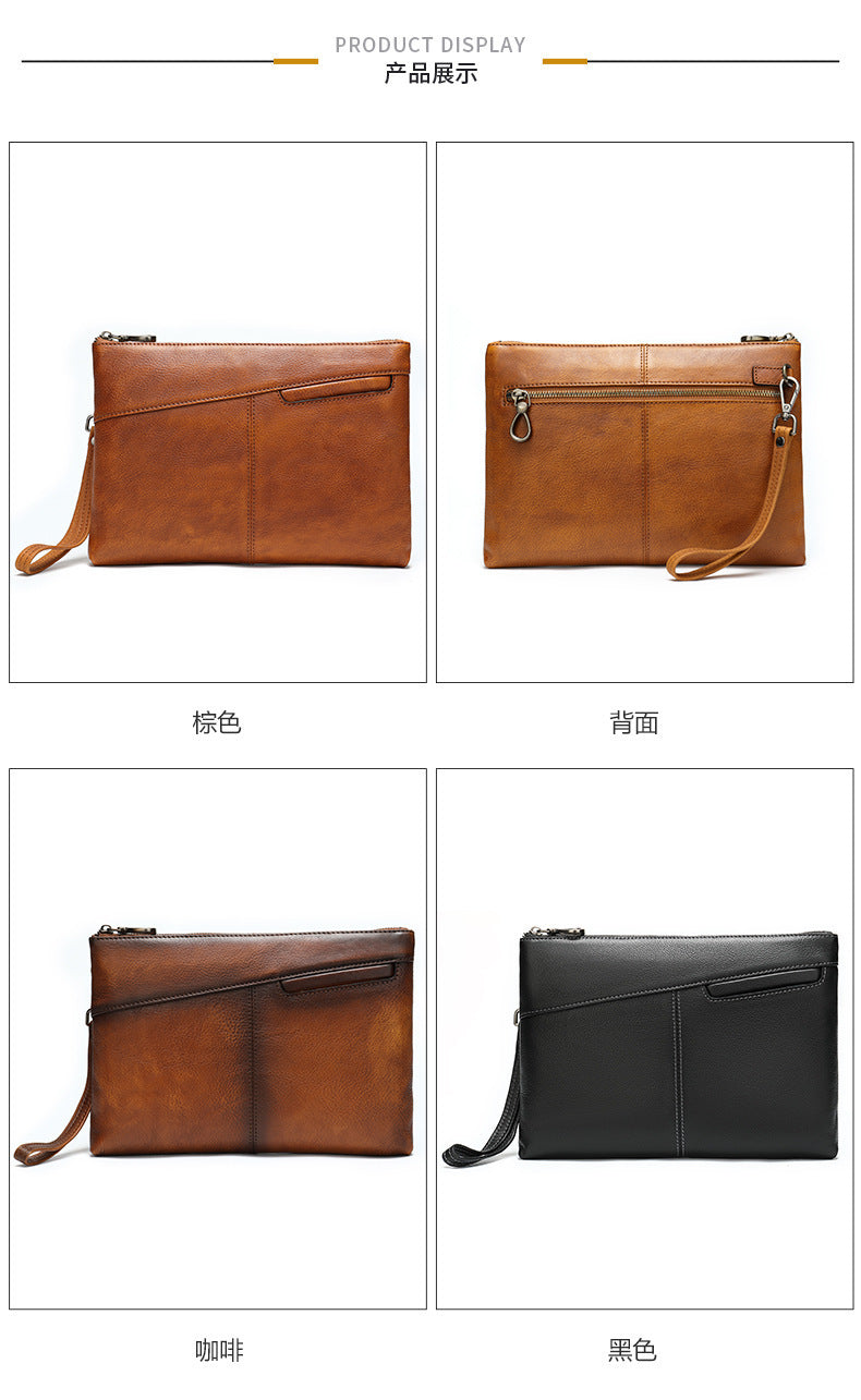 メンズクラッチバッグ 牛皮 本革製 大容量 レトロ ファッション男性用ハンドバッグ